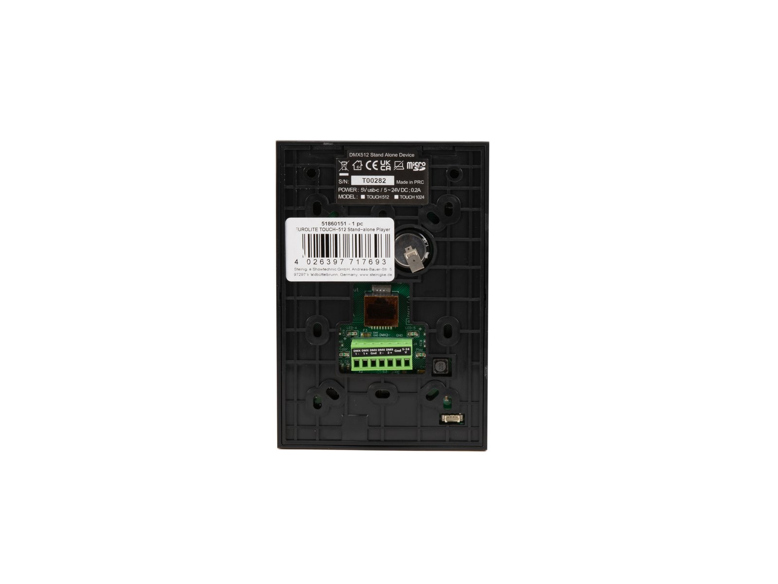 - Flat, wall-mounted stand-alone player for DMX control of light effects without the need for a computer