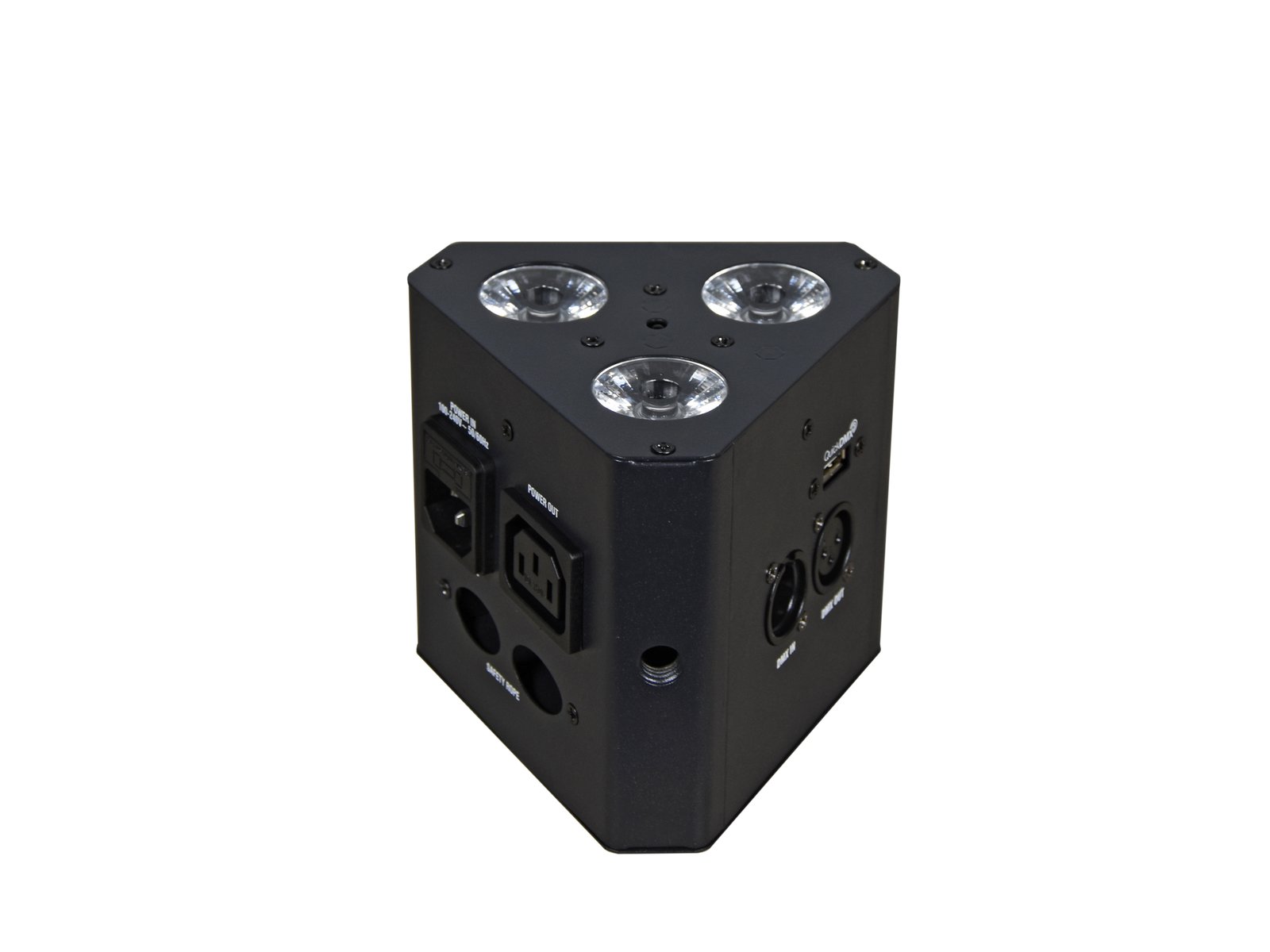 Truss light and uplight with bright 3 x 7 W RGB+UV LEDThe flicker-free EUROLITE TL-3 Trusslight is equipped with three 7 Watt 4in1 LEDs each in the colors red, green, blue and UV. It is compact and powerful and therefore very suitable for trussing, stand construction and stage mounting. The TL-3 fits perfectly to the 3-point system ALUTRUSS DECOLOCK DQ3. Also on board are integrated show programs in auto and music mode, direct color selection for 17 colors, dimmer and strobe effect with variably adjustable speed. The trusslight can be used in master/slave mode. Addressing and settings can be done via the integrated control unit with four-digit LED display. You can control the TL-3 either with the included infrared remote control, in standalone mode, via DMX or optionally QuickDMX. Thanks to the IEC mains connections, you can easily connect up to eight devices together.