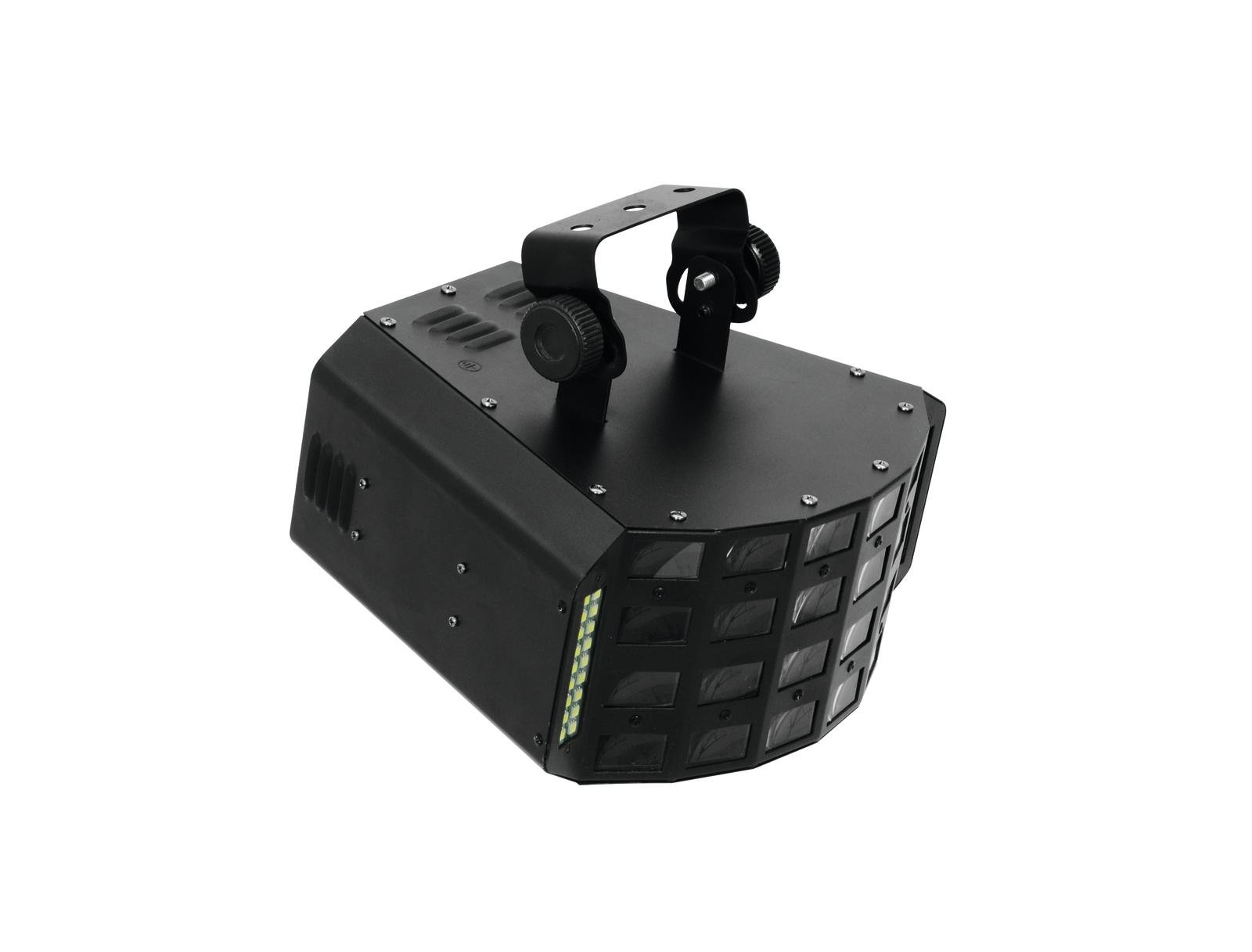 DMX lighting effect with RGBWAP derby, white strobe LEDs, and IR remote control