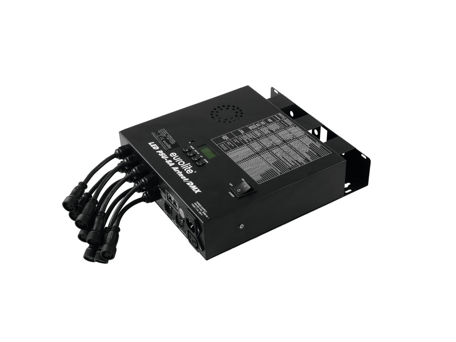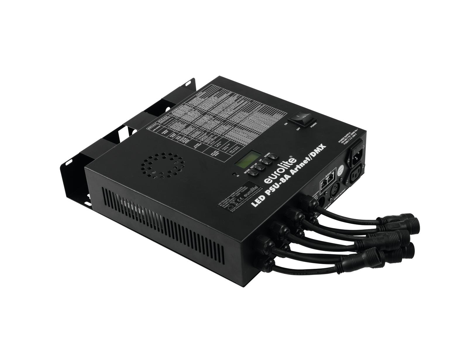 Home Pixel Systems LED video EUROLITE LED PSU-8A Artnet/DMX EUROLITE LED PSU-8A Artnet/DMX SKU: 51928783 281,62 € Desconto de %. IVA incluído. Comprar Contactar Adicionar à wishlist Controller for EUROLITE LED Pixel Tubes 360° SlimController and power supply unit for 8 LED light tubesPixels individually controllable via MadrixColor change adjustable; Dimmer electronic; color blend steplessStrobe effectControl via stand-alone; ArtNet; DMX; Sound to light via Microphone; Master/slave functionLCD displayPreprogrammed in LED PC-Control 512Mains input and output for power linking up to 8 unitsPower supply:100-240 V AC, 50/60 HzPower consumption:350 WPower connection:Mains input via IEC connector (M) mounting version power supply cord with safety plug (provided)Power output:1 x IEC connector (F) mounting versionDMX channels:5; 7; 26DMX input:1 x 3-pin XLR (M) mounting versionDMX output:1 x 3-pin XLR (F) mounting versionControl:Stand-alone; ArtNet; DMX; Sound to light via Microphone; Master/slave functionPreprogrammed in:LED PC-Control 512Display type:LCD displayOutput:12 V DC;Dimensions:Width: 27 cmDepth: 32 cmHeight: 7,6 cmWeight:3,45 kg Marca Eurolite Tags EUROLITELEDPSU-8AArtnet/DMXliderouo Características Partilhar