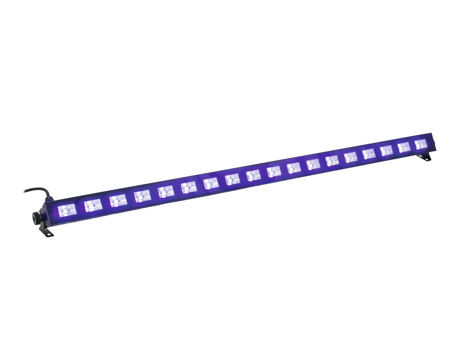 Home Led Par - Floodlights EUROLITE LED Party UV Bar-18 EUROLITE LED Party UV Bar-18 SKU: 51930306 104,50 € Desconto de %. IVA incluído. Comprar Contactar Adicionar à wishlist Simple UV lighting bar with 18 x 1 W UV LEDPerfect for decorative and illumination purposesSlender housing18 powerful LEDs 1 W high-power ultra violet (UV)UV effectThe device is cooled by passive convection coolingControl via On/off switch at cableWith a beam angle of 30°With Mounting bracketVarious versions availableFor application areas such as: Clubs/dancing school; Party room; mobile djs/entertainer; restaurants, bars and hotelsSilent operationApplication possibility: Suspended; standingPackage contents1 x spotlight, 2 x mounting bracket, 2 x screw, 2 x washer, 1 x user manualPower supply:100-240 V AC, 50/60 HzPower consumption:40 WIP classification:IP20Protection class:Protection class IPower connection:Fixed power supply cord with safety plugCable length:Approx. 1 mLamp type:LED lampLED:18 x 1 W high-power ultra violet (UV)Cooling:Passive convection coolingControl:On/off switch at cableBeam angle:30°Beam angle (1/2 peak):30°Wavelength:Ultra violet (UV) 398 nmHousing color:BlackAttachment system:2x Mounting bracketMaterial:AluminumDimensions:Width: 1 mDepth: 5 cmHeight: 6,5 cmWeight:1,11 kgNoise classification:Class 0 (no noise at all)Photobiological safety:Risk Group 2Legal specificationsSpecial product:Not designed for household room illuminationIntended use:Show effect lighting Marca Eurolite Tags EUROLITELEDPartyUVBar-18liderouAfesta Características Partilhar