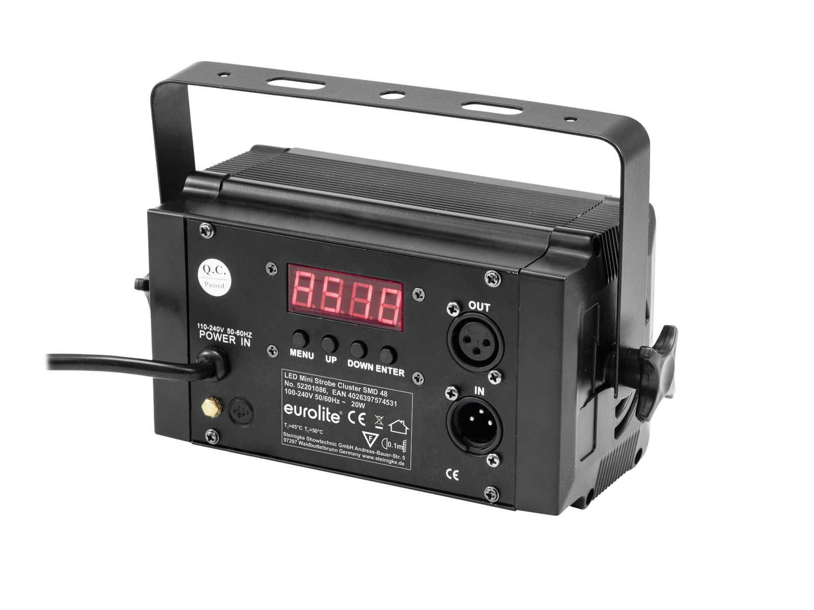 Compact strobe with 48 SMD LEDs, adjustable flash freuquency + DMX