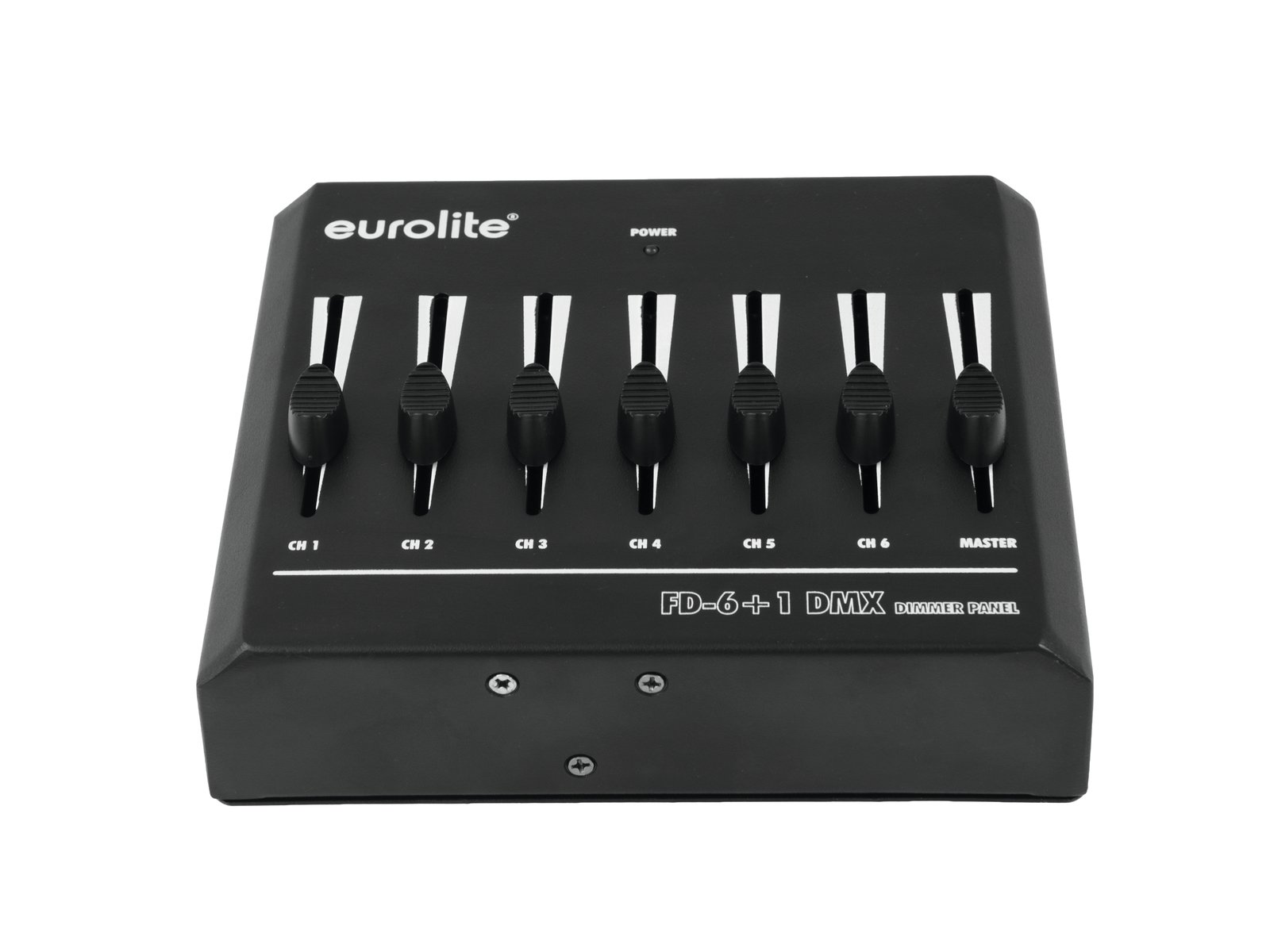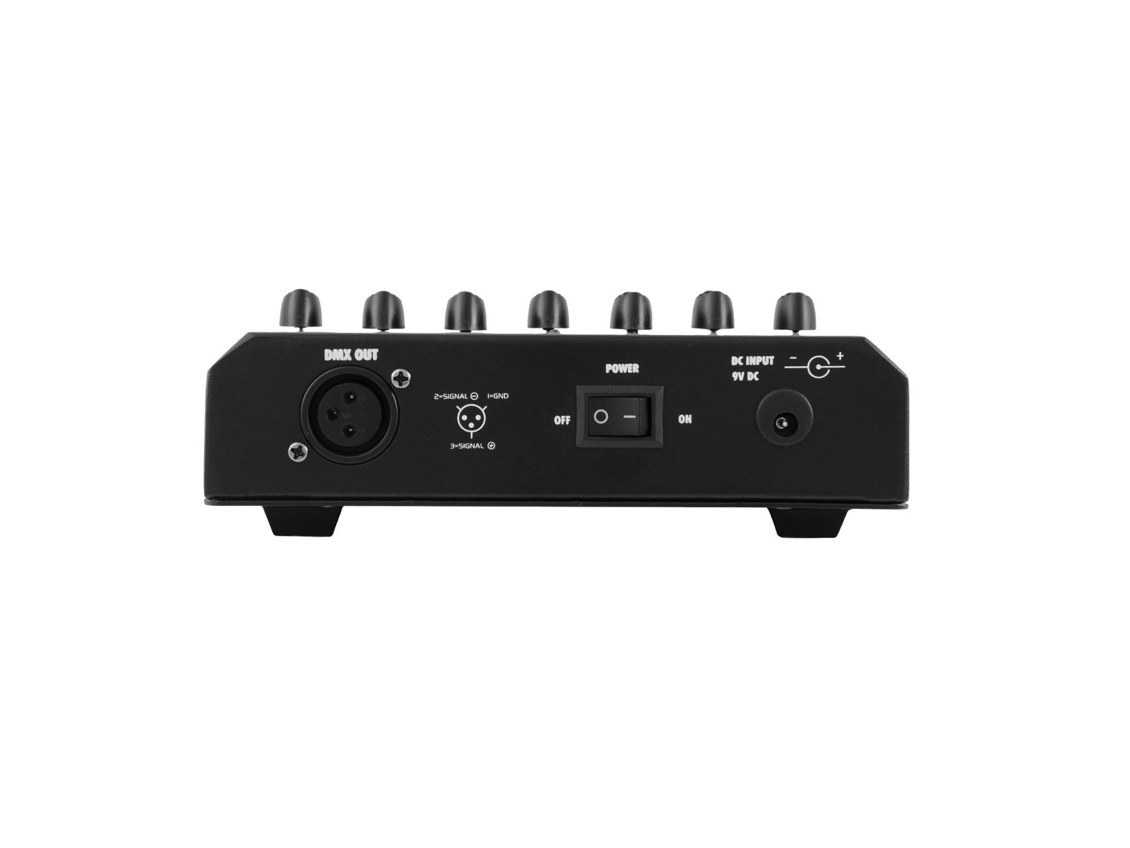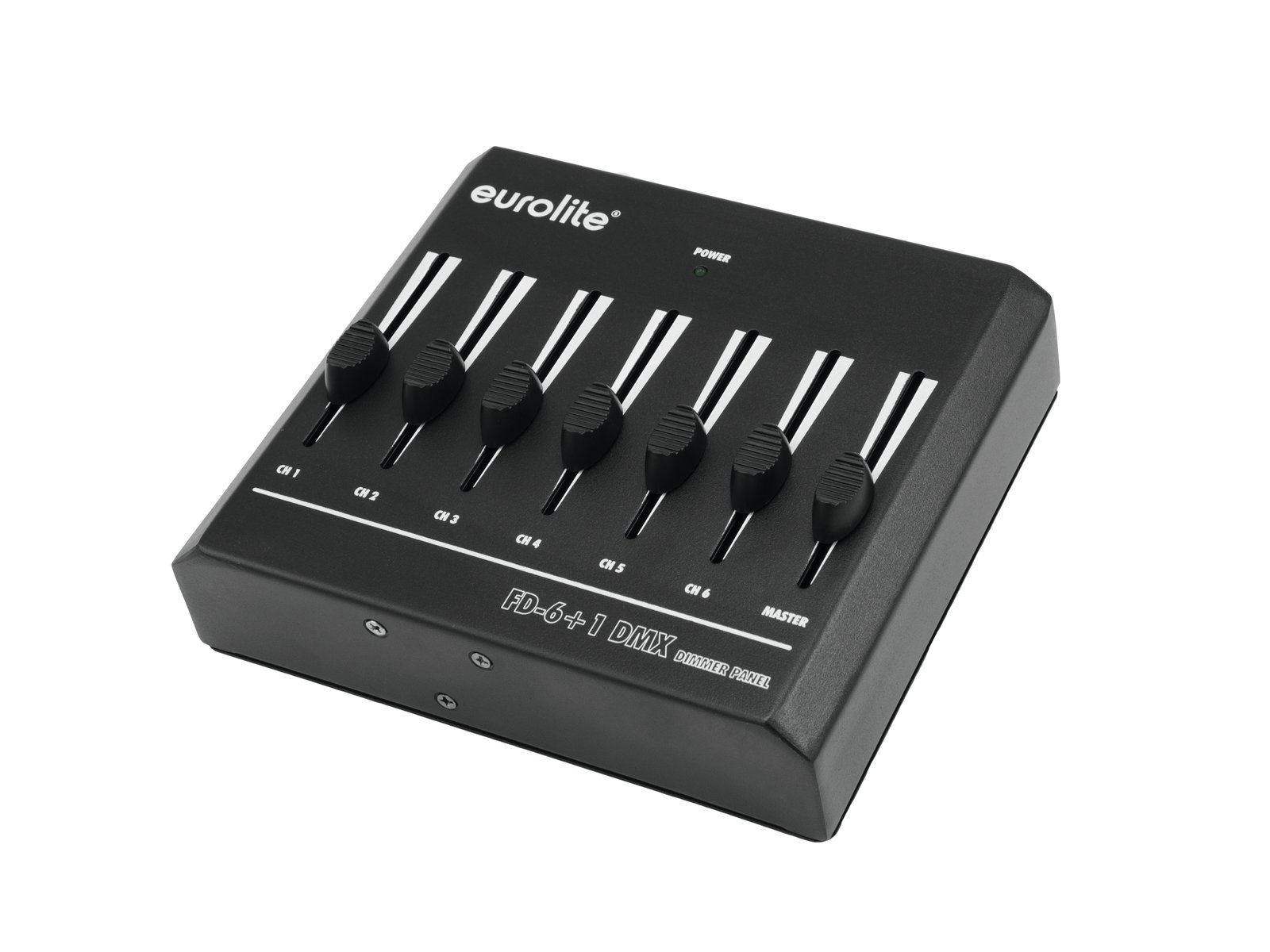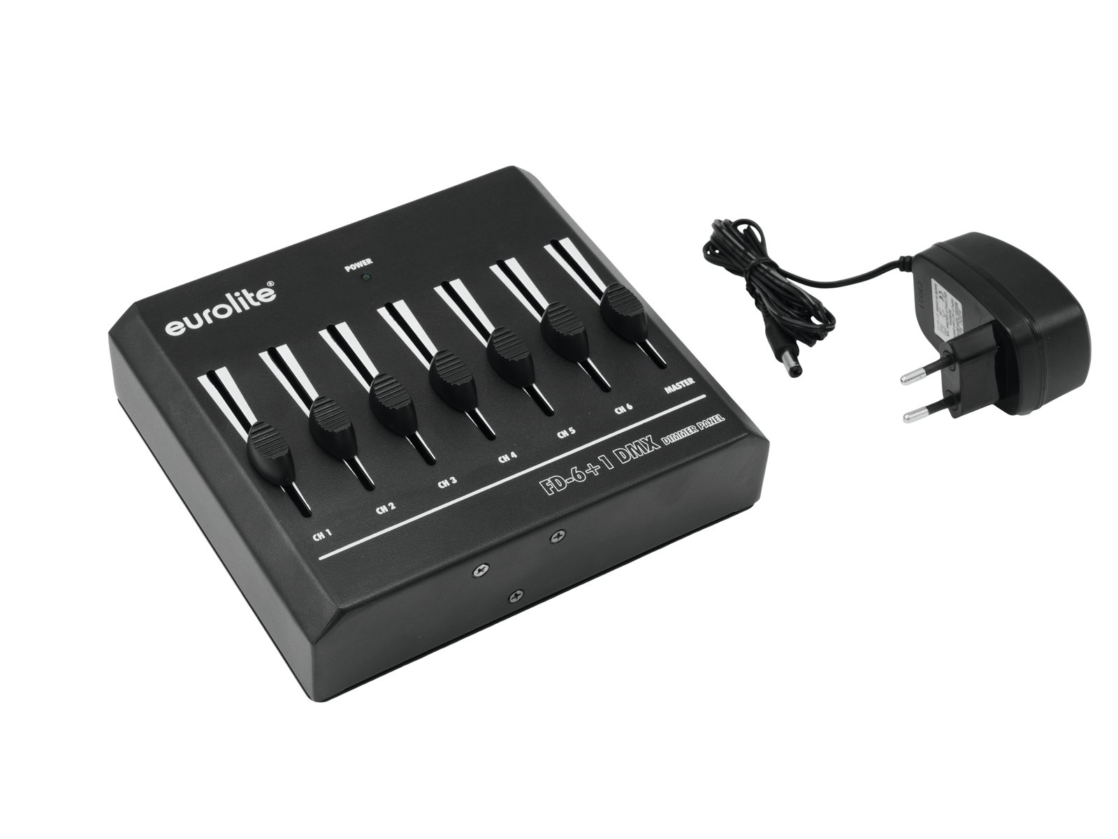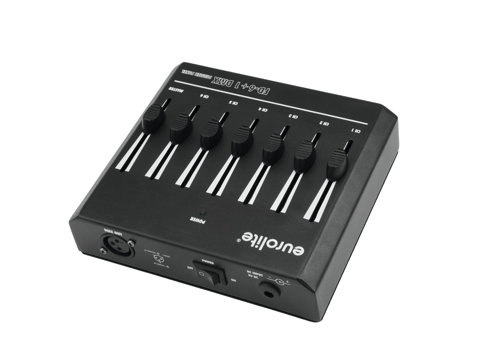 Home DMX Controllers EUROLITE FD-6+1 DMX Dimmer Panel EUROLITE FD-6+1 DMX Dimmer Panel SKU: 70063802 69,08 € Desconto de %. IVA incluído. Comprar Contactar Adicionar à wishlist Basic DMX controller for 6 channels with master faderBasic DMX controller for convenient operation of light effect units with DMX512 interface (e.g. spotlights and dimmers)6 channel faders for adjusting the DMX values1 master faderCompact designPowered by a battery/battery packCan transmit up to 6 DMX channelsDesktop console housingFor application areas such as: Trade fair and shop fitting; restaurants, bars and hotels; video and photographySilent operationPackage contents1 x controller, 1 x user manual, 1 x external mains adapterPower supply:100-240 V AC, 50/60 Hz9 V DCPower consumption:1,8 WIP classification:IP20Protection class:Protection class IIIPower connection:Mains input via Coaxial power connector (M) mounting version power supply cord with AC adapter (provided)Battery/battery pack possibleBattery:1 x 9.0 V E block (not included)DMX channels:Output 6DMX output:3-pin XLR (F) mounting versionHousing color:BlackHousing design:Desktop console housingDimensions:Width: 17 cmDepth: 15,5 cmHeight: 6 cmWeight:960 gNoise classification:Class 0 (no noise at all) Marca Eurolite Tags EUROLITEFD-6+1DMXDimmerPanelPainel Características Partilhar
