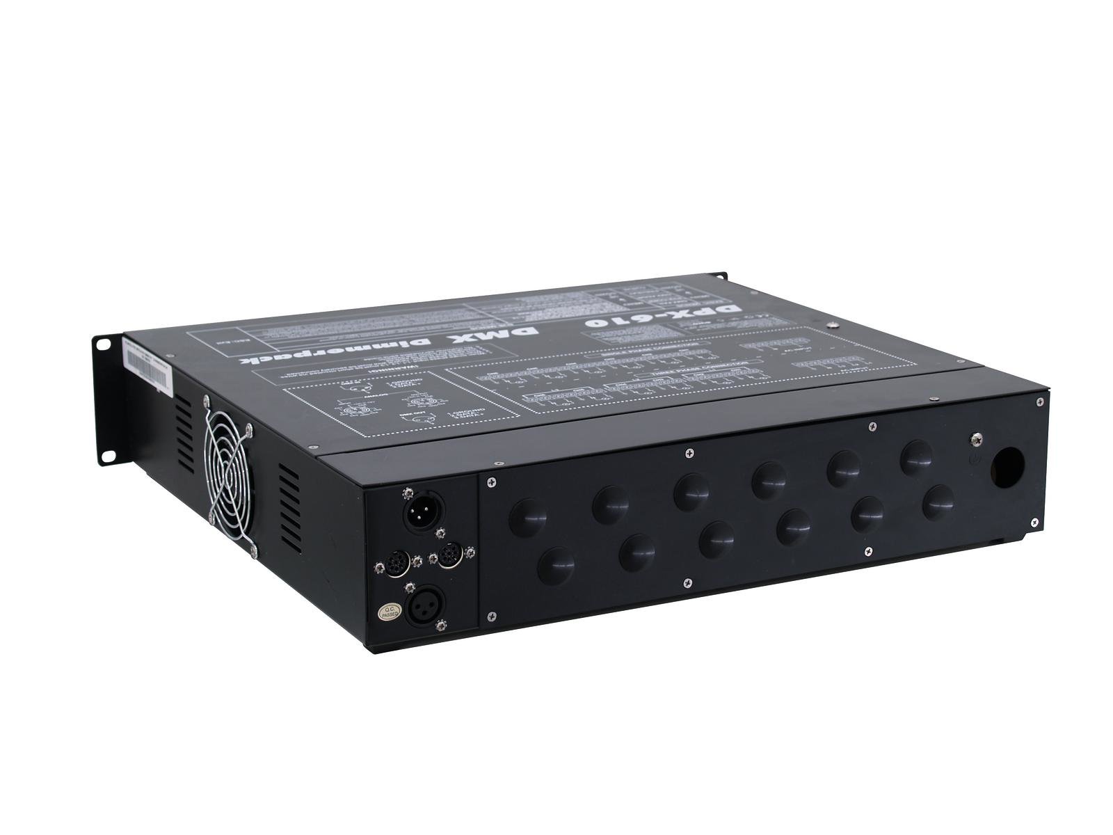 Home Dimmers / switch EUROLITE DPX-610 DMX Dimmer Pack EUROLITE DPX-610 DMX Dimmer Pack SKU: 70064120 469,37 € Desconto de %. IVA incluído. Comprar Contactar Adicionar à wishlist 6x10A dimmer for DMX & analog signals, connection via terminal blocksUniversal dimmer pack for professional useCan be operated 1-phase or 3-phaseDMX control or analog control possibleThe DMX-starting address can be adjusted on the deviceSynchronization of several devices possible via DMXAdjusting the lamp pre-heatWith automatic circuit breaker per channelChannel-outputs on the rearpanel via pole connectorsOnly for professional usePreprogrammed 12 chasersControl via Analog 0-10 V; stand-alone; DMX(19") 48.3 cm rack installation 2 UFor application areas such as: Trade fair and shop fitting; Stage; theater; RentalVery quiet working noisePackage contents1 x device, 1 x user manualPower supply:230/380 V AC, 50 HzOutput power:Max. 13800 WMax. 2300 W per channalOutput current:Max. 60 APower connection:Mains input via screw terminalPower output:Screw terminalPower output fuse per channel:C 10 A Fuse resettablePrograms:Preprogrammed 12 ChasersDMX channels:6DMX input:3-pin XLR (M) mounting versionDMX output:3-pin XLR (F) mounting versionControl:Analog 0-10 V; stand-alone; DMXControl channels:6Color:BlackHousing design:(19") 48.3 cm rack installation 2 UDimensions:Width: 48,3 cmDepth: 41 cmHeight: 8,9 cmWeight:7,50 kgNoise classification:Class 1 (very slight noise, suitable for noise-sensitive environments) Marca Eurolite Tags EUROLITEDPX-610DMXDimmerPack Características Partilhar