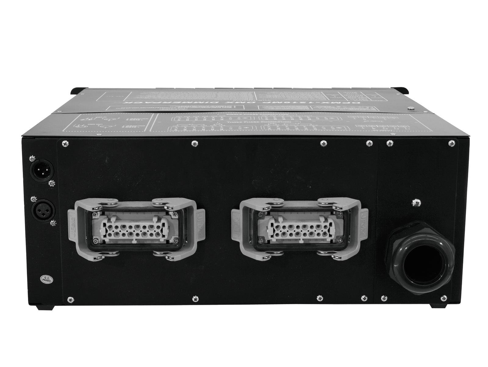 Reliability is always important. Especially at professional events the breakdown of any part of the equipment cannot be accepted. The DPMX-1216 dimmer pack series is the right answer here because it plays it safe: this universal output stage has an automatic circuit breaker on every channel, so single failures can be corrected without causing a complete blackout. Another benefit are the different outputs. Pole connector, safety plug, CEE or multipin: the DPMX-1216 19" serves really any kind.