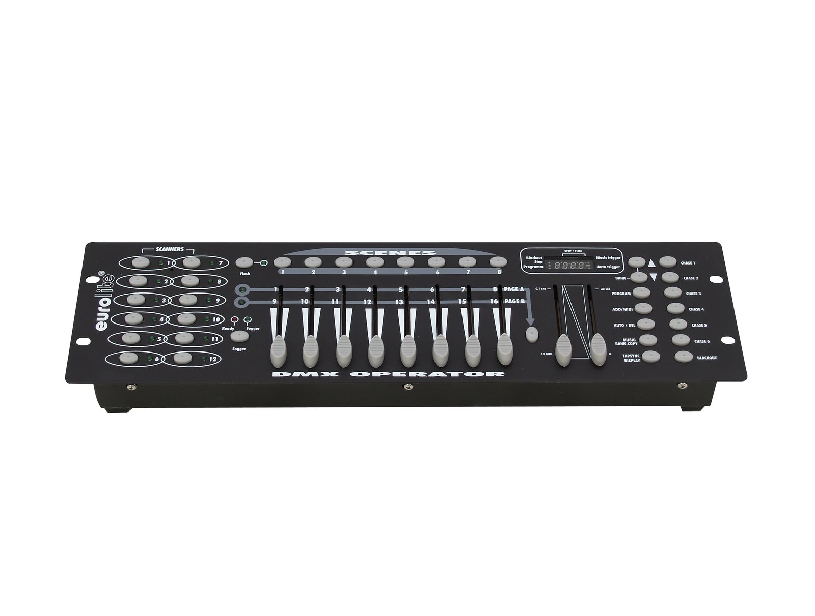 Home DMX Controllers EUROLITE DMX Operator 192 Controller EUROLITE DMX Operator 192 Controller SKU: 70064520 146,83 € Desconto de %. IVA incluído. Comprar Contactar Adicionar à wishlist DMX controller for 12 devices with max. 16 DMX channels8 preset scenesCopy function for the scenes, programs and recordsBlackout functionProgrammable 6 sequencens each with 240 scenesCan transmit up to 192 DMX channelsControl via DMX; Sound to light via Microphone4 digit 7-segment LED display(19") 48.3 cm rack installation 3 UFor application areas such as: Party room; small rentalSilent operationPackage contents1 x controller, 1 x user manual, 1 x external mains adapterPower supply:230 V AC, 50 HzPower consumption:4,00 WIP classification:IP20Protection class:Protection class IIIPower connection:Mains input via 3-pin screw plug connector (M) mounting version power supply cord with AC adapter (provided)Programs:Programmable6 SequencesEach with 240 ScenesDMX channels:Output 192DMX output:1 x 3-pin XLR (F) mounting versionControl:DMX; Sound to light via MicrophoneHousing color:BlackDisplay type:4 digit 7-segment LED displayColor:BlackHousing design:(19") 48.3 cm rack installation 3 UDimensions:Width: 48,3 cmDepth: 13,2 cmHeight: 8,9 cmWeight:2,35 kgNoise classification:Class 0 (no noise at all) Marca Eurolite Tags EUROLITEDMXOperator192ControlleroperadorControlador Características Partilhar