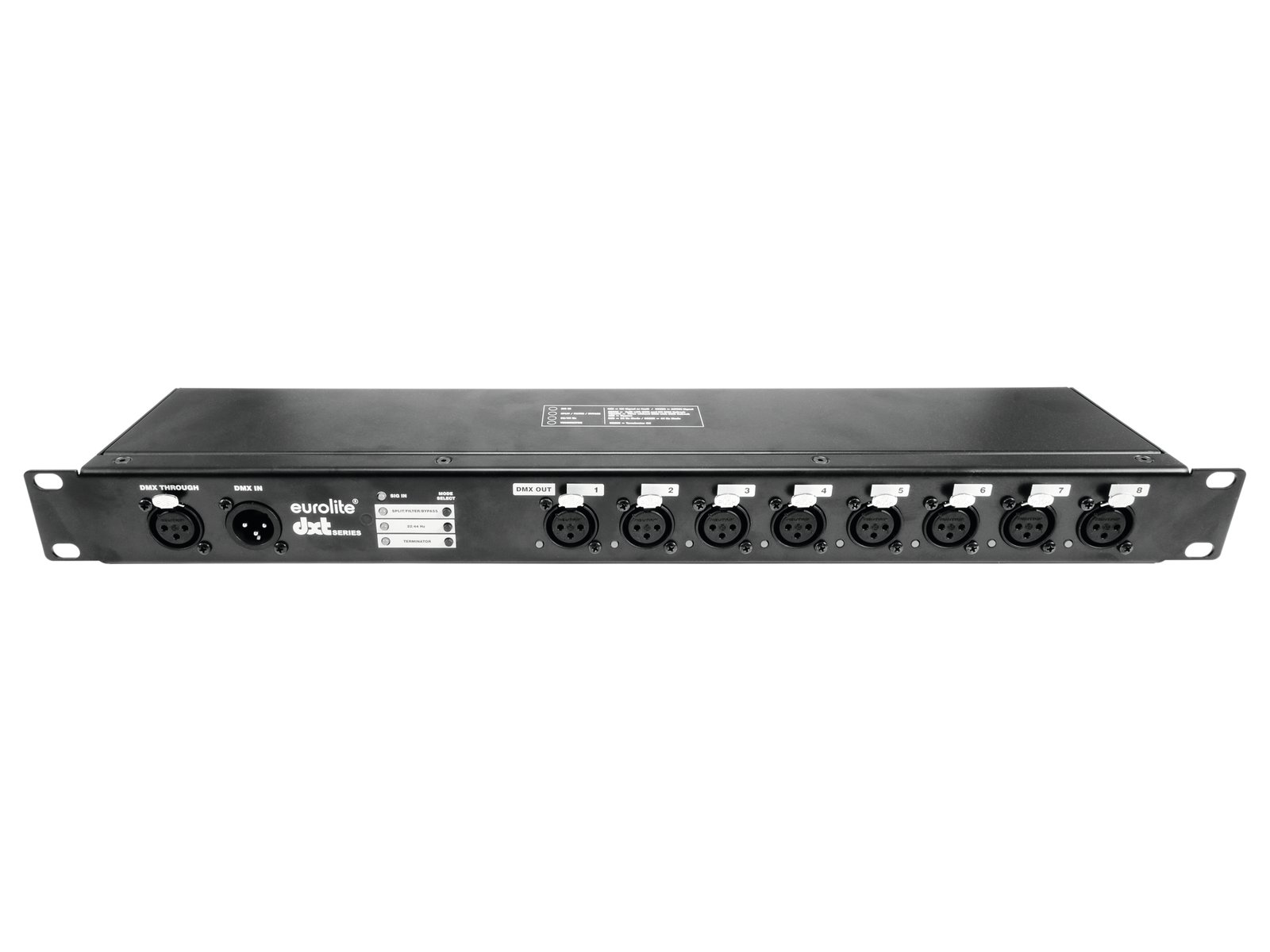 - DMX splitter for splitting one DMX input signal to 8 DMX outputs