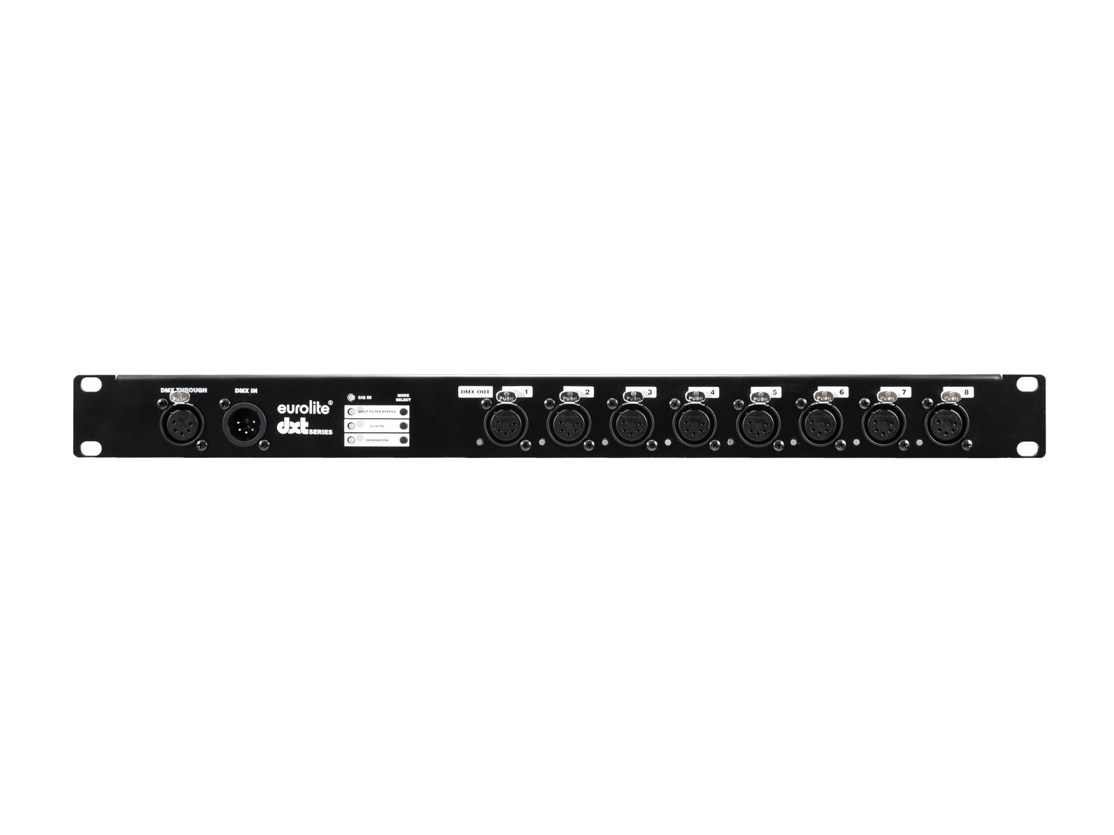 - DMX splitter for splitting one DMX input signal to 8 DMX outputs