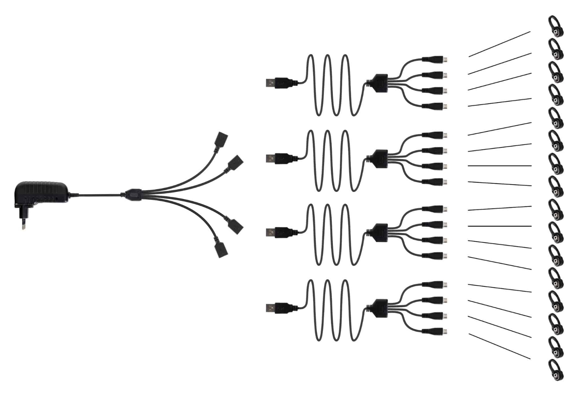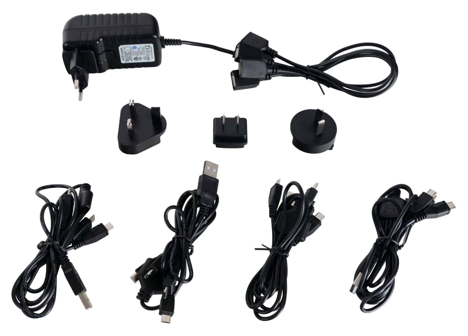 Ladenetzteil für Silent Disco V2 System, Bis zu 16 Kopfhörer mit nur einer Steckdose gleichzeitig laden, Dank USB-Verbindung auch Laden über PC und Laptop möglich, Mit 3 Adaptern für ausländische Steckdosen,