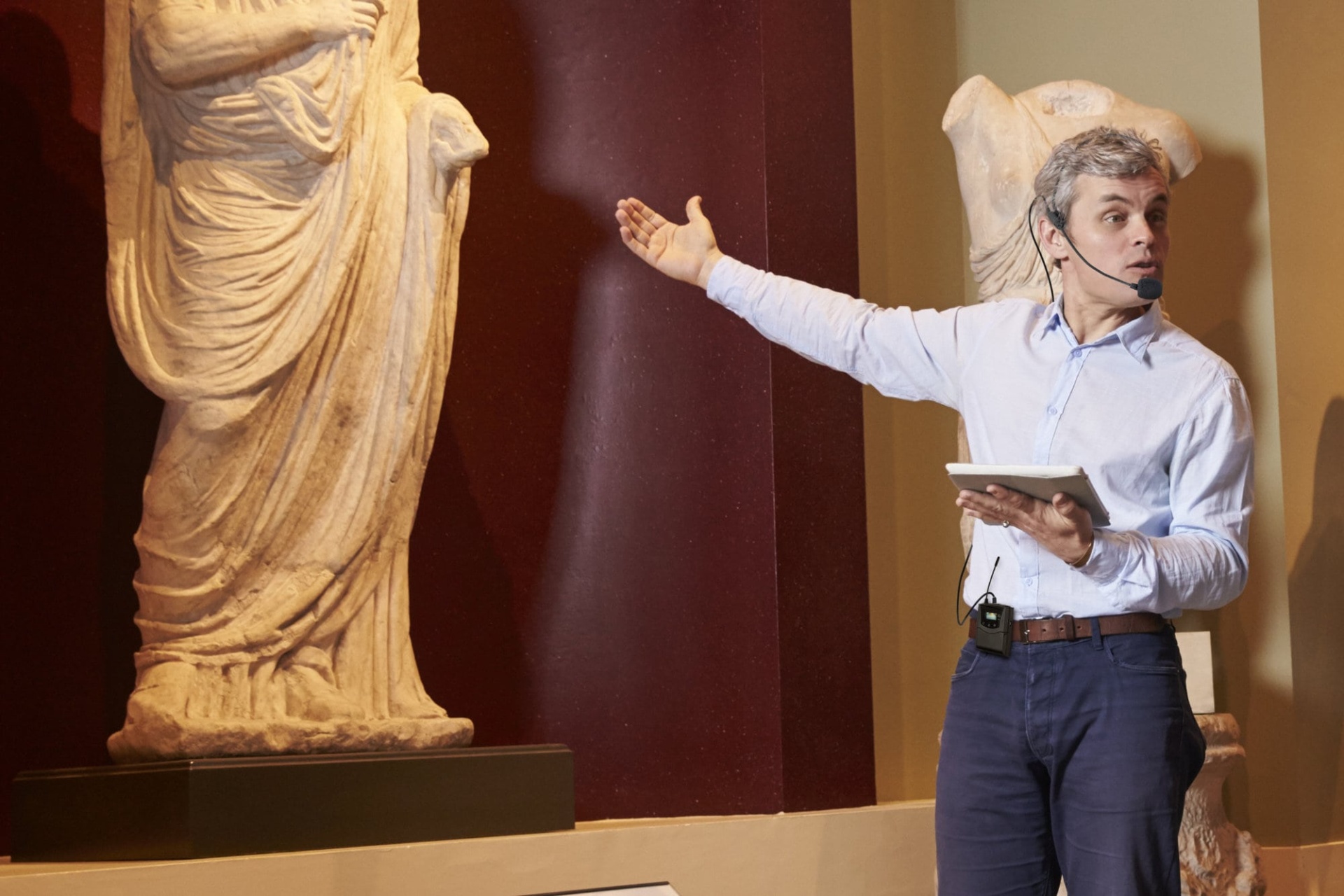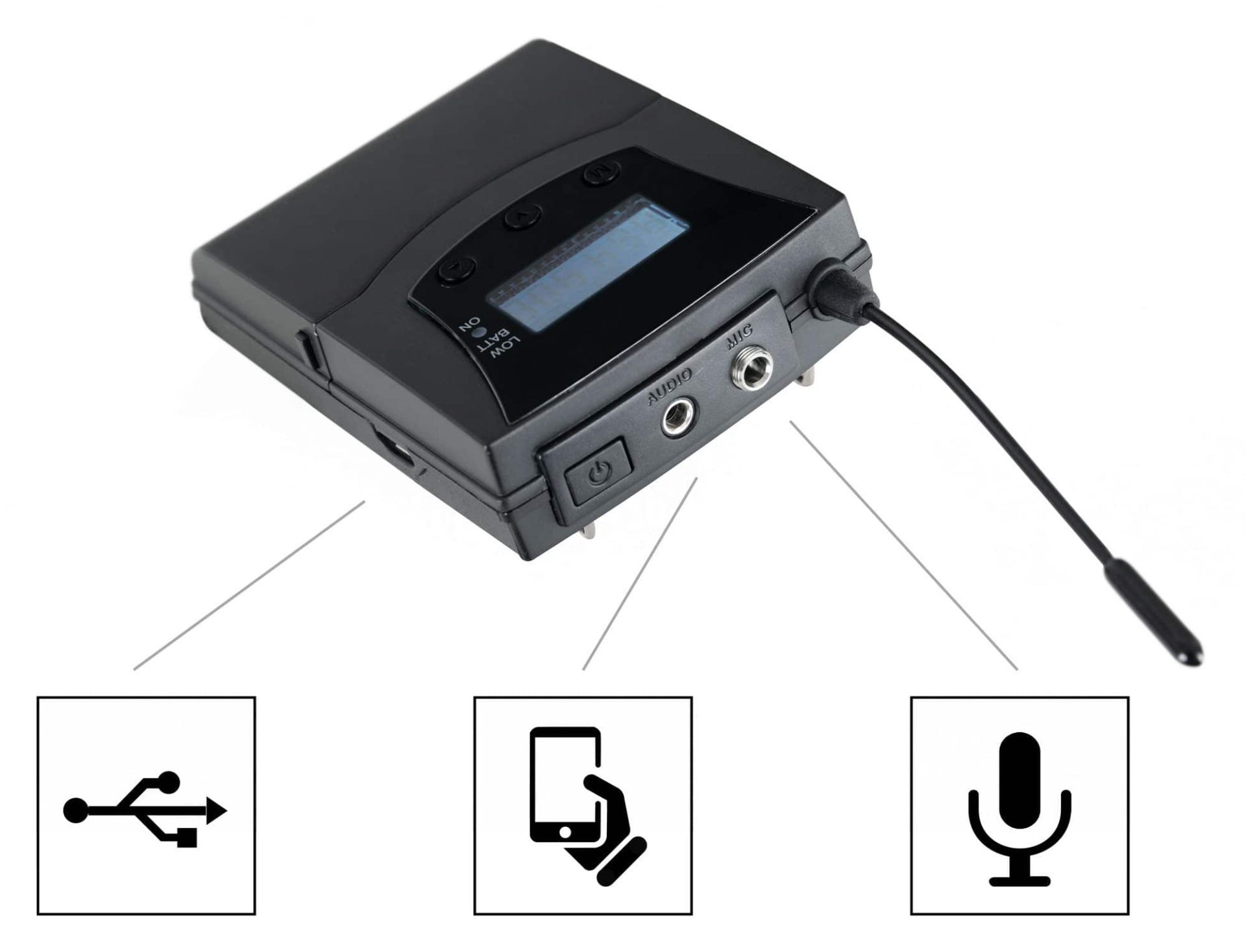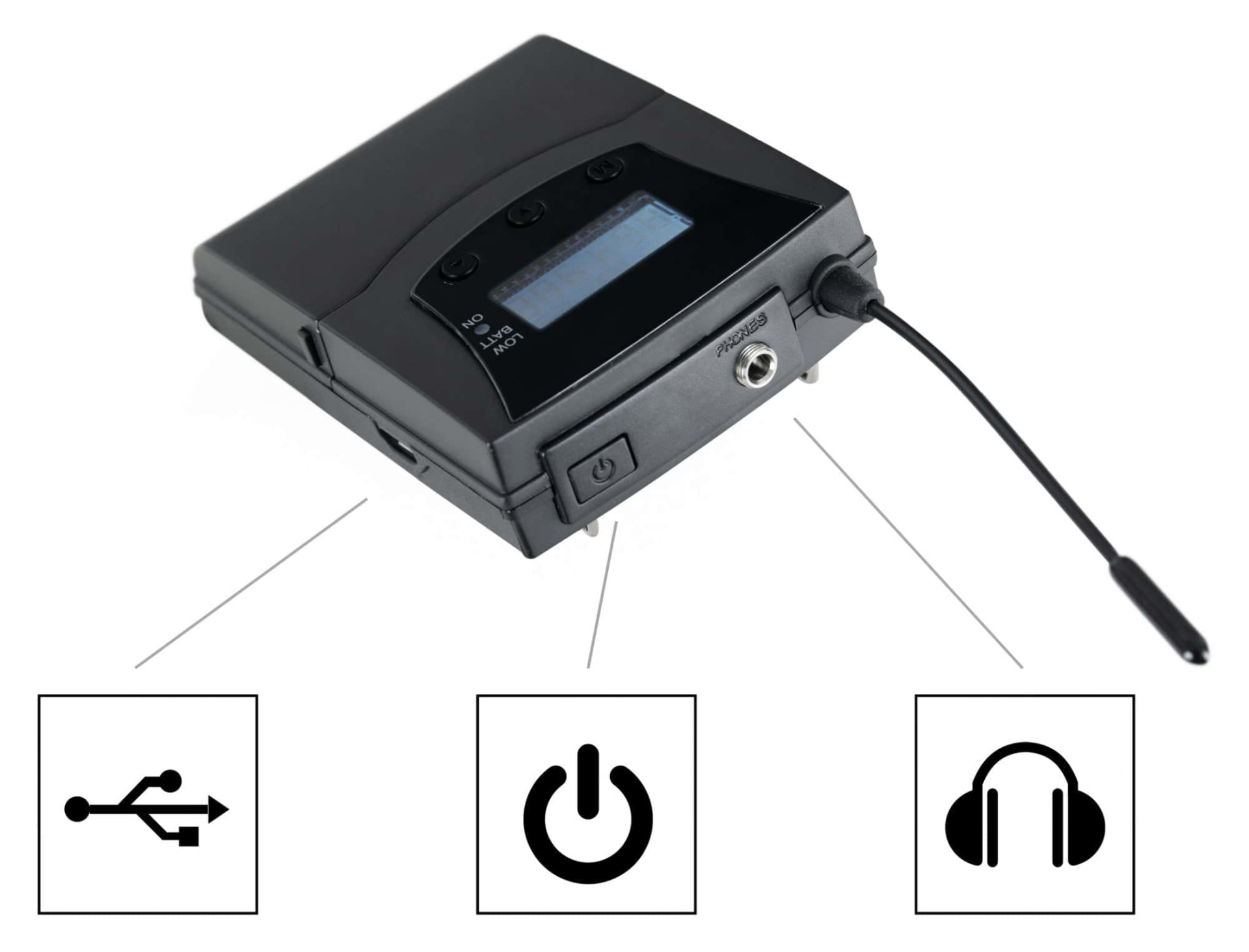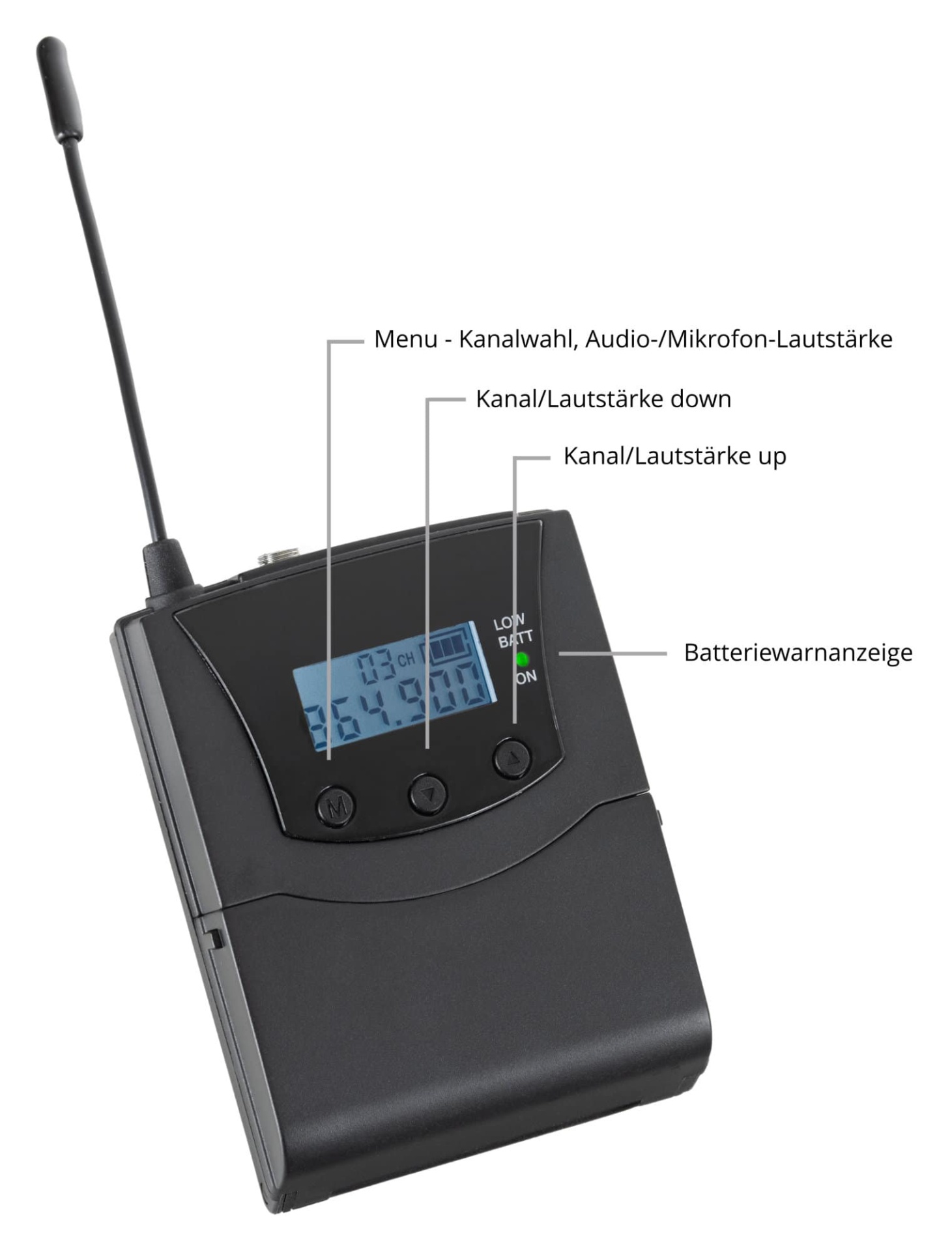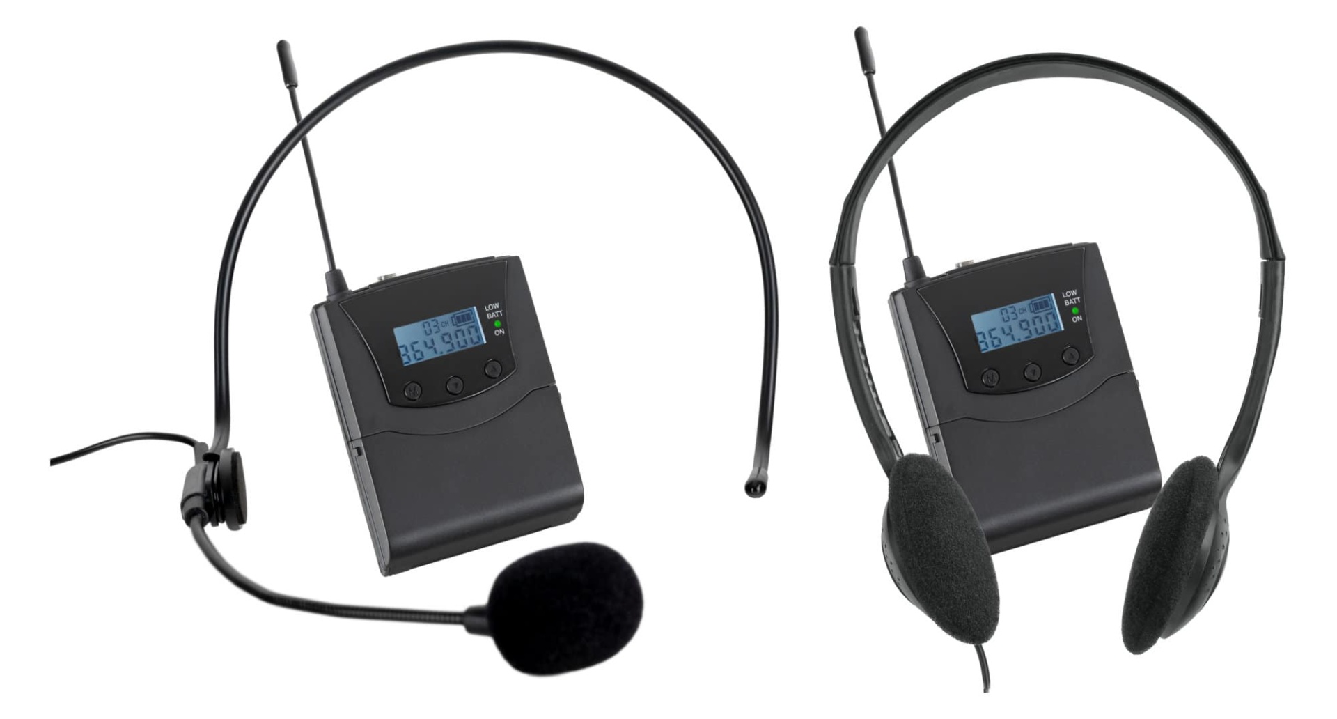 Set bestehend aus 15 Empfängern mit Kopfhörern und einem Sender mit Mikrofon, Geeignet für z.B. Stadtführungen und kleinere Außenveranstaltungen, Tragbarer Sender mit 50 m Reichweite, 24 Stunden Akkulaufzeit, Inkl. Headset-Mikrofon, Individuelle Lautstärke am Empfänger einstellbar,