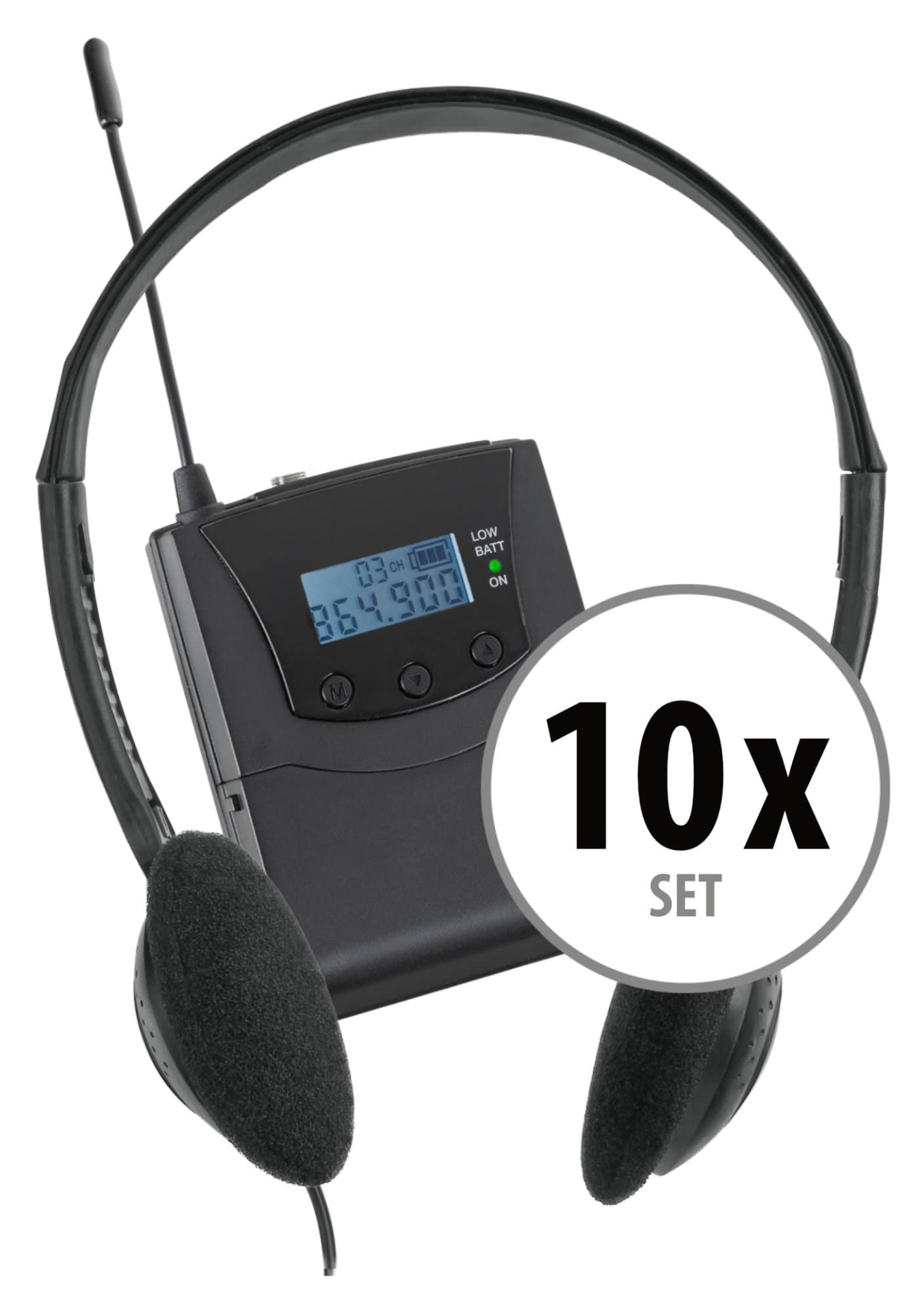 10 Stereo Funk-Empfänger mit Gürtelclip, 10 ultraleichte Stereo-Kopfhörer, Für Betrieb mit Beatfoxx Silent-V2-Sendern geeignet, Display zeigt ausgewählten Kanal, Ca. 24 Stunden Batterielaufzeit,