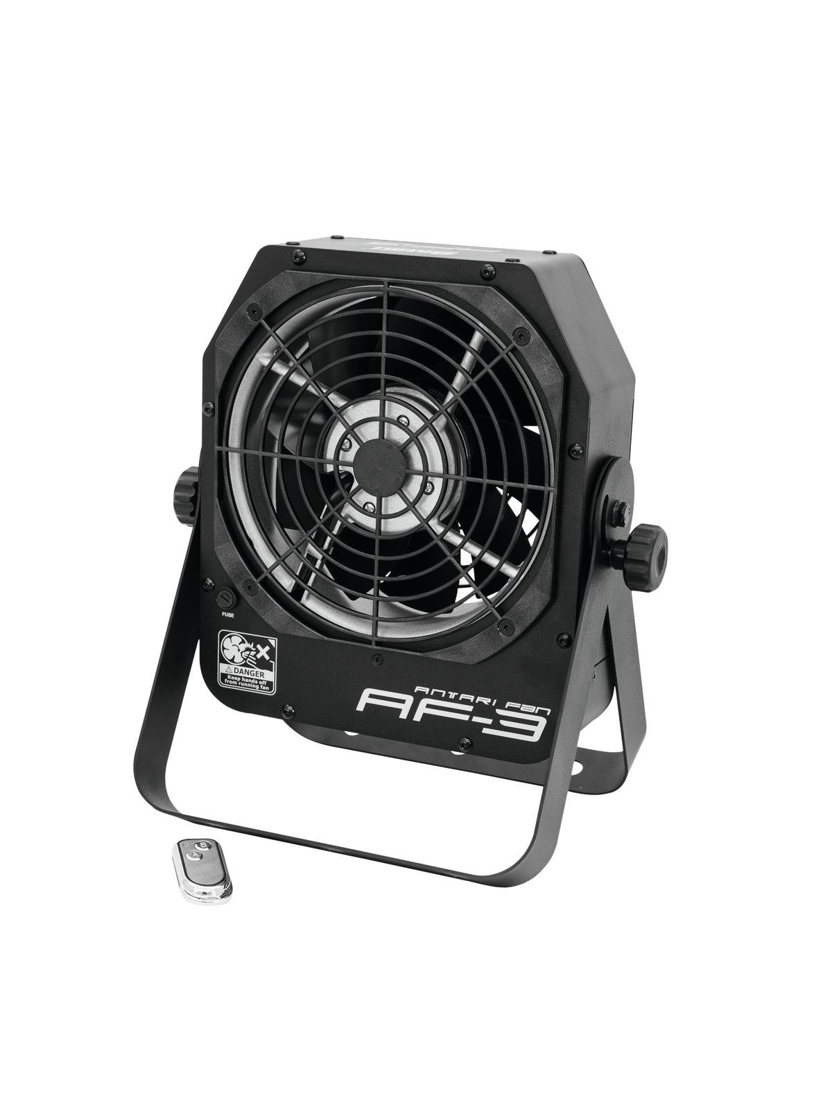 Home VENTILATORS & FANS ANTARI AF-3R Effect Fan ANTARI AF-3R Effect Fan SKU: 80208052 595,12 € Desconto de %. IVA incluído. Comprar Contactar Adicionar à wishlist DMX controlled wind machine, adjustable air discharge angle + remote controlGreat effect when used e.g. with fog, snow and bubble machinesManual control via rotary dialAir discharge angle adjustableLow power consumptionControl via stand-alone; DMX; Wireless remote controlWith Mounting bracketWireless remote control: Operating range up to 50mBuilt with NEUTRIK connectorFor application areas such as: Mobile use; StagePackage contents1 x device, 1 x user manual, 1 x power cord, 1 x remote control, 1 x declaration of conformityPower supply:230 V AC, 50 HzPower consumption:116 WPower connection:Mains input via PowerCON (blue), mounting version power supply cord with safety plug (provided)Power output:1 x PowerCON (gray), mounting versionSpeed:750 RPM - 2250 RPMMaximum airflow:900 m³/hDMX channels:1DMX output:1 x 5-pin XLR (F) mounting versionControl:Stand-alone; DMX; Wireless remote controlHousing color:BlackAttachment system:Mounting bracketRange:Wireless remote control: range up to 50mUse of brands:Built with NEUTRIK connectorDimensions:Width: 33,3 cmHeight: 37 cmWeight:5,95 kgRemote controlBattery:1 x 12 V LR27 alkaline manganese built-in Marca ANTARI Tags ANTARIAF-3REffectFanVentiladordeEfeito Características Partilhar