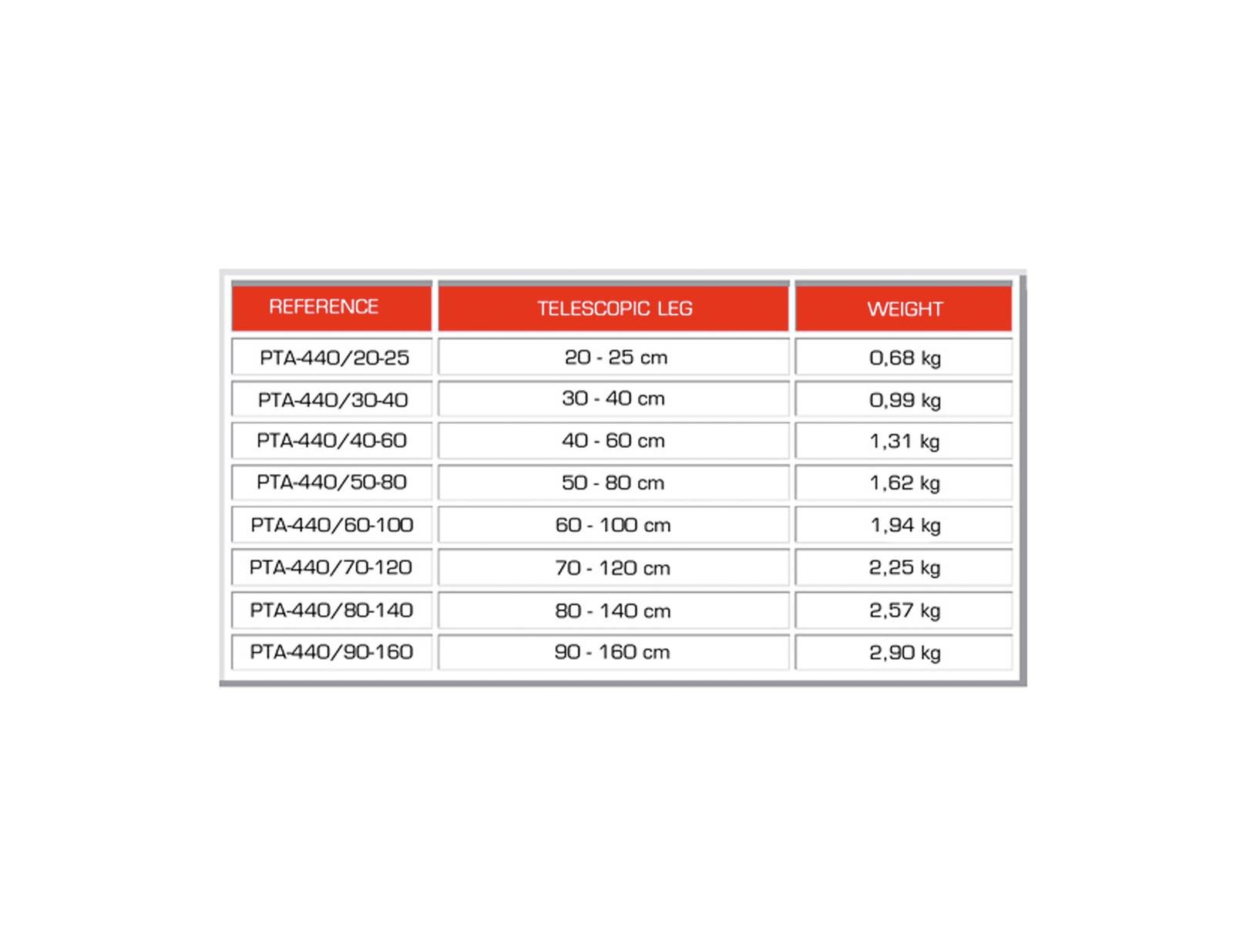 Home Decks / platforms GUIL PTA-440/90-160 Telescopic Foot GUIL PTA-440/90-160 Telescopic Foot SKU: 8070288J 110,70 € Desconto de %. IVA incluído. Comprar Contactar Adicionar à wishlist Variable foot for TM-440 stage elementAdjustable heightMade in EuropeFor further information about this product, please refer to the Data Sheet under "Downloads"Height:Maximum: 160 cmMinimum: 90 cmMaterial:AluminumMaterial thickness:3 mmDimensions:Length: 5 cmWidth: 5 cmHeight: 87,5 cmWeight:3 kg Marca GUIL Tags GUILPTA-440/90-160TelescopicFootPételescópico Características Partilhar