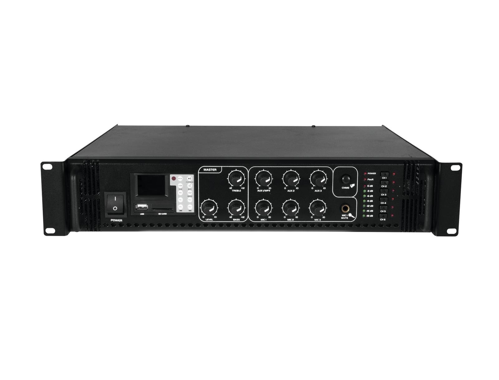 6-zone-PA mixing amplifier with audio player and remote control, switchable zones, 500 W RMS