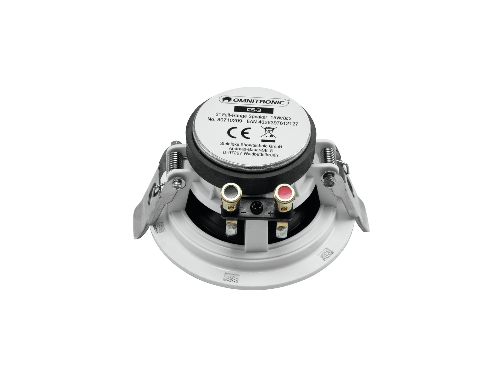 Home INDOOR PUBLIC ADDRESS SPEAKERS OMNITRONIC CS-3 Ceiling Speaker, white, 2x OMNITRONIC CS-3 Ceiling Speaker, white, 2x SKU: 80710209 45,87 € Desconto de %. IVA incluído. Comprar Contactar Adicionar à wishlist 3" full-range flush-mount speaker, 15 W RMS / 8 ohms, Ø 90 mm3" full-range speakerFor speech and background music in indoor PA systemsScratchproof and shockproofPackage contents2 x speaker, 1 x user manualPower:Program: 30WRated: 15W RMSFrequency range:150 - 20000 HzSensitivity:85 dBMax. SPL:100 dBImpedance:8 ohmsSpeaker:1 x full rage loudspeaker (3") approx. 8 cmType of speaker:Flush-mount speakerMaterial:ABS Acrylonitrile butadiene styreneColor:White, scratchproof and shockproofMounting dimensions:Ø 9 cmDimensions:Depth: 5,5 cmDiameter: Ø 10 cmWeight:760 g Marca Omnitronic Tags OMNITRONICCS-3CeilingSpeakerwhite2xOnitronicteto-falanteBranco Características Partilhar