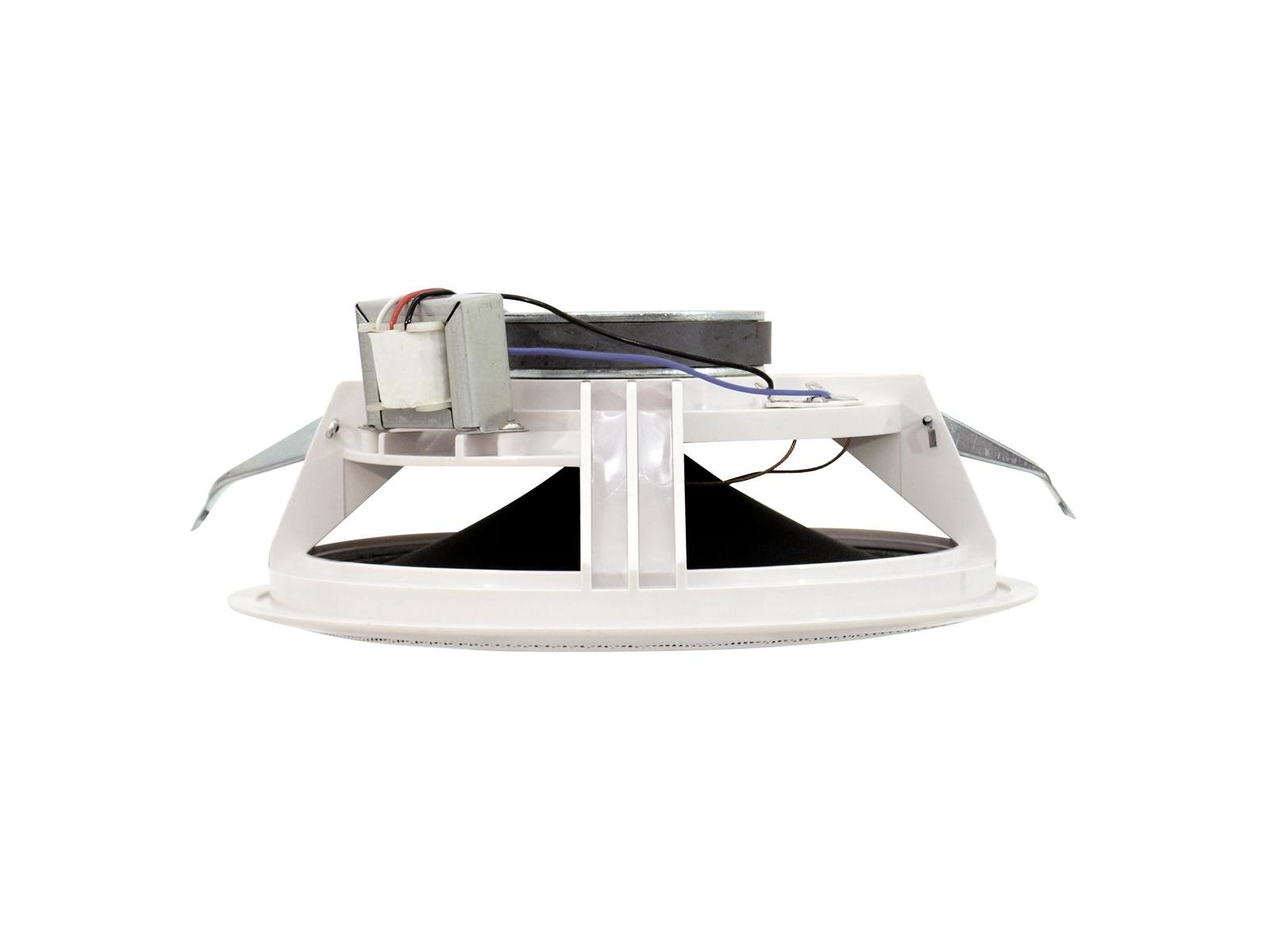 Home INDOOR PUBLIC ADDRESS SPEAKERS OMNITRONIC CSE-8 Ceiling Speaker OMNITRONIC CSE-8 Ceiling Speaker SKU: 80710242 33,48 € Desconto de %. IVA incluído. Comprar Contactar Adicionar à wishlist 8" full-range flush-mount speaker, 100 V, 10 W RMS Ø 215 mm20 cm double-cone speaker (8")Easy mounting, similar to standard flush-mount lightsFor speech and background music in indoor PA systemsScratchproof and shockproofPackage contents1 x speaker, 1 x user manualPower:Program: 20WRated: 10W RMSFrequency range:100 - 15000 HzSensitivity:93 dBMax. SPL:99 dBImpedance:Public address systems 100VPower tapping:5W; 10W RMS via screw terminal switchableSpeaker:1 x full rage loudspeaker (8") approx. 20 cmType of speaker:Flush-mount speakerMaterial:ABS Acrylonitrile butadiene styreneColor:White, scratchproof and shockproofMounting dimensions:Ø 21,5 cmDimensions:Depth: 9,5 cmDiameter: Ø 23 cmWeight:950 g Marca Omnitronic Tags OMNITRONICCSE-8CeilingSpeakerPalestrante Partilhar