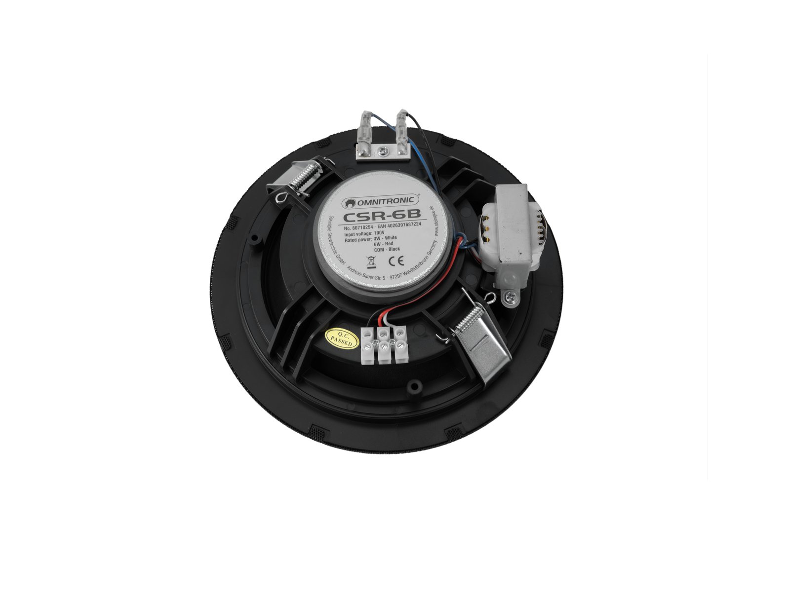 Home INDOOR PUBLIC ADDRESS SPEAKERS OMNITRONIC CSR-6B Ceiling Speaker black OMNITRONIC CSR-6B Ceiling Speaker black SKU: 80710254 29,93 € Desconto de %. IVA incluído. Comprar Contactar Adicionar à wishlist 6" full-range flush-mount speaker, 100 V, 6 W RMS, Ø 170 mm16.5 cm full-range speaker (6.5")Easy mounting, similar to standard flush-mount lightsHigh-impact polystyrene (HIPS) enclosure and grilleFor speech and background music in indoor PA systemsPackage contents1 x user manual, 1 x speakerPower:Program: 12WRated: 6W RMSFrequency range:75 - 20000 HzSensitivity:93 dBMax. SPL:104 dBImpedance:Public address systems 100VPower tapping:3W; 6W RMS via screw terminal switchableSpeaker:1 x woofer (6") approx. 15 cmType of speaker:Flush-mount speakerMaterial:PlasticColor:BlackMounting dimensions:Ø 17 cmDimensions:Depth: 7,8 cmDiameter: Ø 19,3 cmWeight:760 g Marca Omnitronic Tags OMNITRONICCSR-6BCeilingSpeakerblackOnitronicteto-falantepreto Características Partilhar