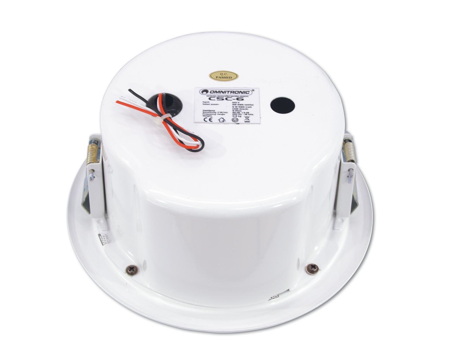 Home INDOOR PUBLIC ADDRESS SPEAKERS OMNITRONIC CSC-6 Ceiling Speaker OMNITRONIC CSC-6 Ceiling Speaker SKU: 80710280 41,80 € Desconto de %. IVA incluído. Comprar Contactar Adicionar à wishlist 6" full-range speaker with firedome, 100 V, 6 W RMS, Ø 185 mmFiredome for safety in case of fireEasy mounting, similar to standard flush-mount lightsFor further information about this product, please refer to the Data Sheet under "Downloads"Power:Program: 12WRated: 6W RMSFrequency range:100 - 18000 HzSensitivity:92 dBMax. SPL:96 dBImpedance:Public address systems 100VPower tapping:3W; 6W RMS via no connector/cable only switchableSpeaker:1 x woofer (6") approx. 15 cmType of speaker:Flush-mount speakerMounting dimensions:Ø 18,5 cmDimensions:Depth: 9 cmDiameter: Ø 20 cmWeight:910 g Marca Omnitronic Tags OMNITRONICCSC-6CeilingSpeakerAlto-falanteteto Características Partilhar