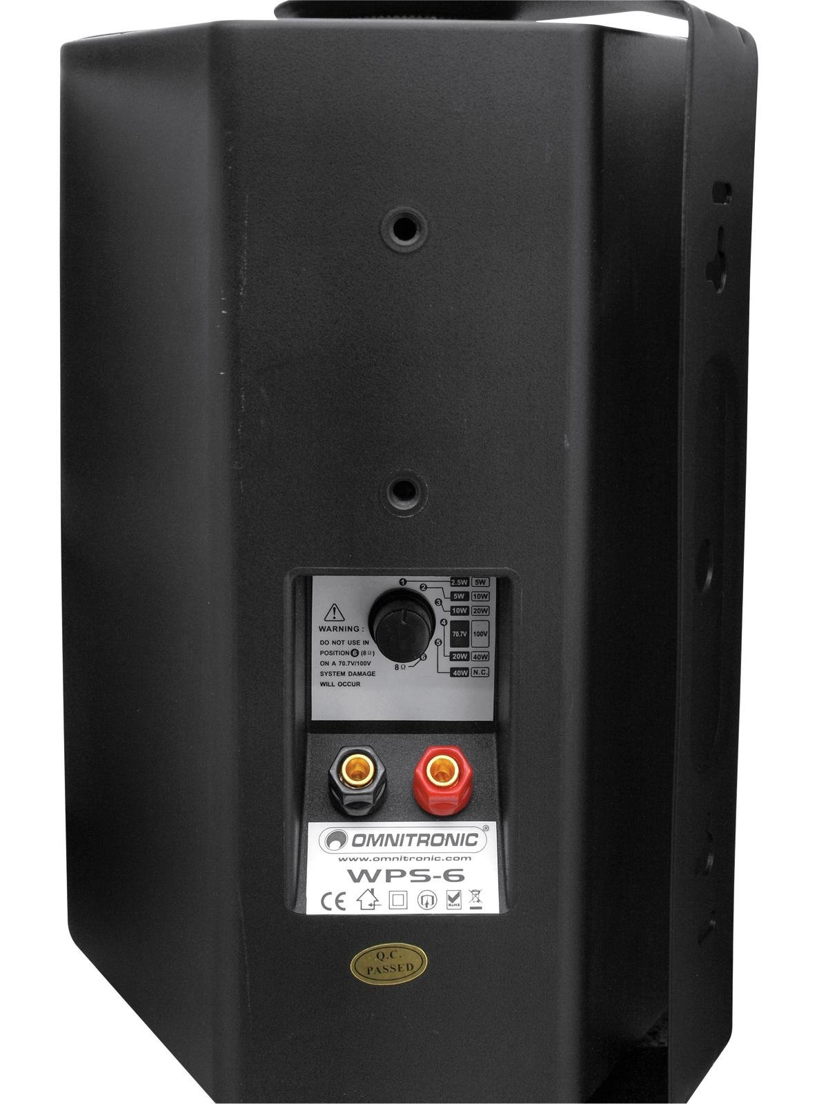 The WPS series by OMNITRONIC convinces with its well thought-out package: apart from the undeniable neat looks, sound as well as functions are located on a high level. The 2-way systems, as the WPS-6S, are equipped with a mulit-step potentiometer, an ABS plastic body with a metal safety guard and a pivotable mounting bracket. Due to the trapezoid construction, the fitting in corners is as easy as anything.