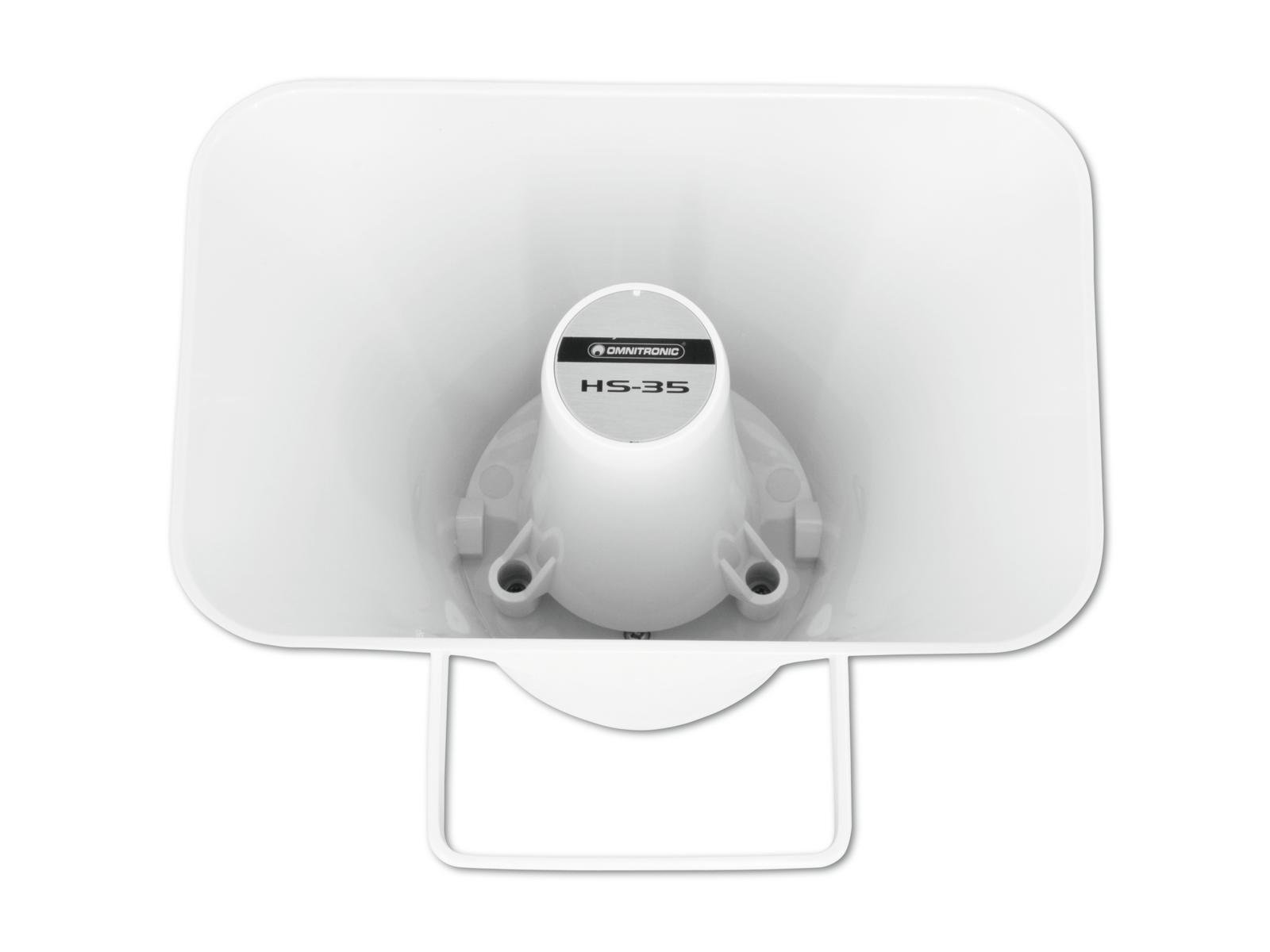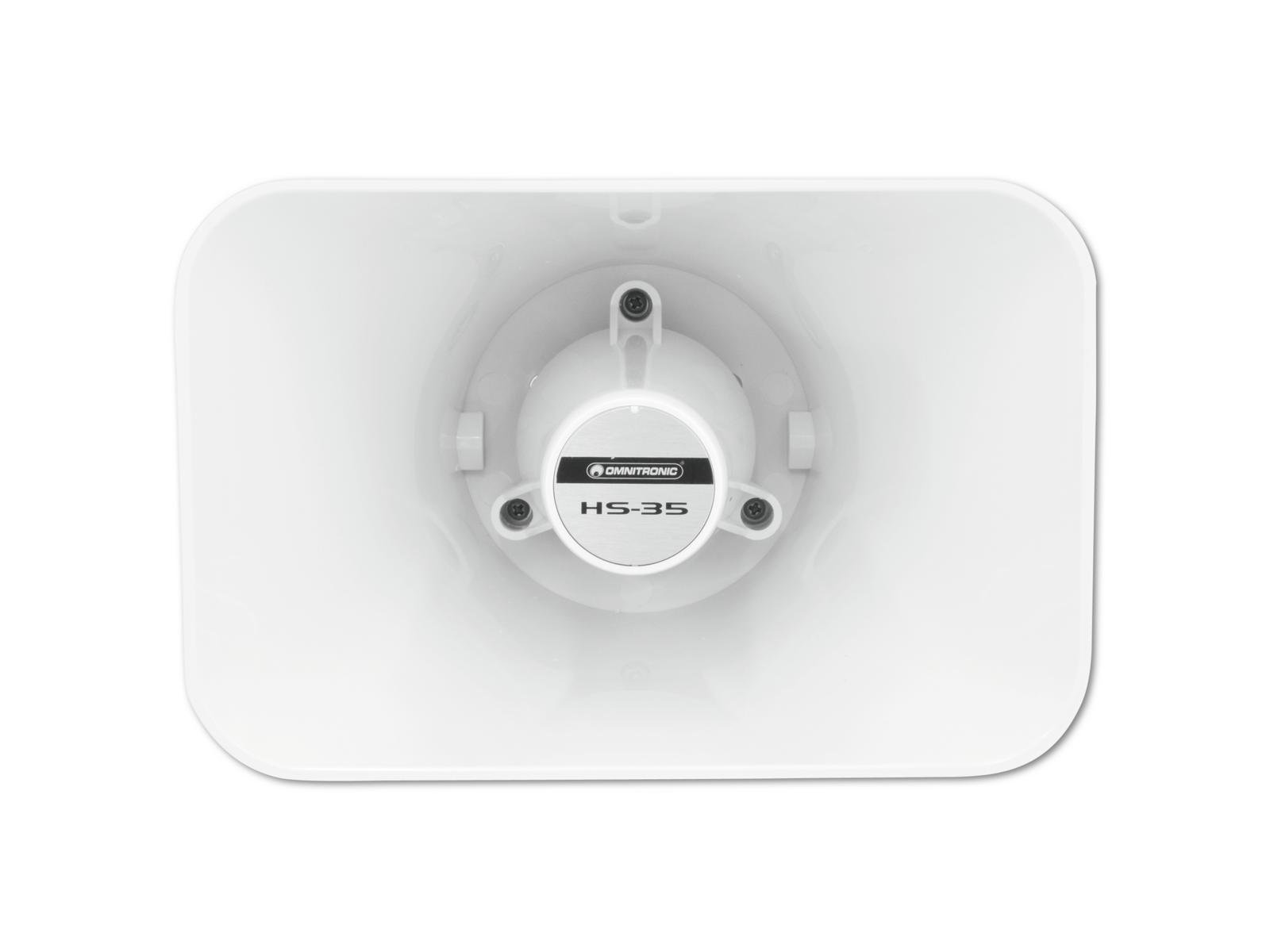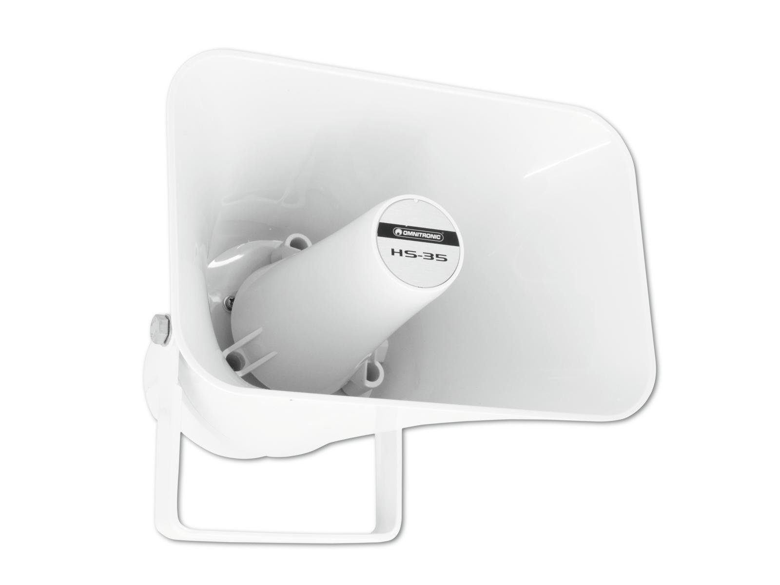 Home Horn Speaker OMNITRONIC HS-35 PA Horn Speaker OMNITRONIC HS-35 PA Horn Speaker SKU: 80710811 46,94 € Desconto de %. IVA incluído. Comprar Contactar Adicionar à wishlist Weather-proof horn speaker, Public address systems 100V 7,5/15 W RMSFor outdoor amplifying systems in football stadiums, outdoor pools, open air eventsWith Mounting bracketSuitable for outdoor use IP56Scratchproof and shockproofFor further information about this product, please refer to the Data Sheet under "Downloads"Package contents1 x device, 1 x user manualIP classification:IP56Power:Program: 30WRated: 15W RMSFrequency range:400 - 5000 HzMax. SPL:105 dBImpedance:Public address systems 100VAttachment system:Mounting bracketPower tapping:7,5W; 15W RMS via no connector/cable only switchableType of speaker:HornMaterial:ABS Acrylonitrile butadiene styreneColor:White, scratchproof and shockproofDimensions:Width: 22,8 cmDepth: 28,1 cmHeight: 23,2 cmWeight:1,45 kg Marca Omnitronic Tags OMNITRONICHS-35PAHornSpeakerOnitronic Características Partilhar