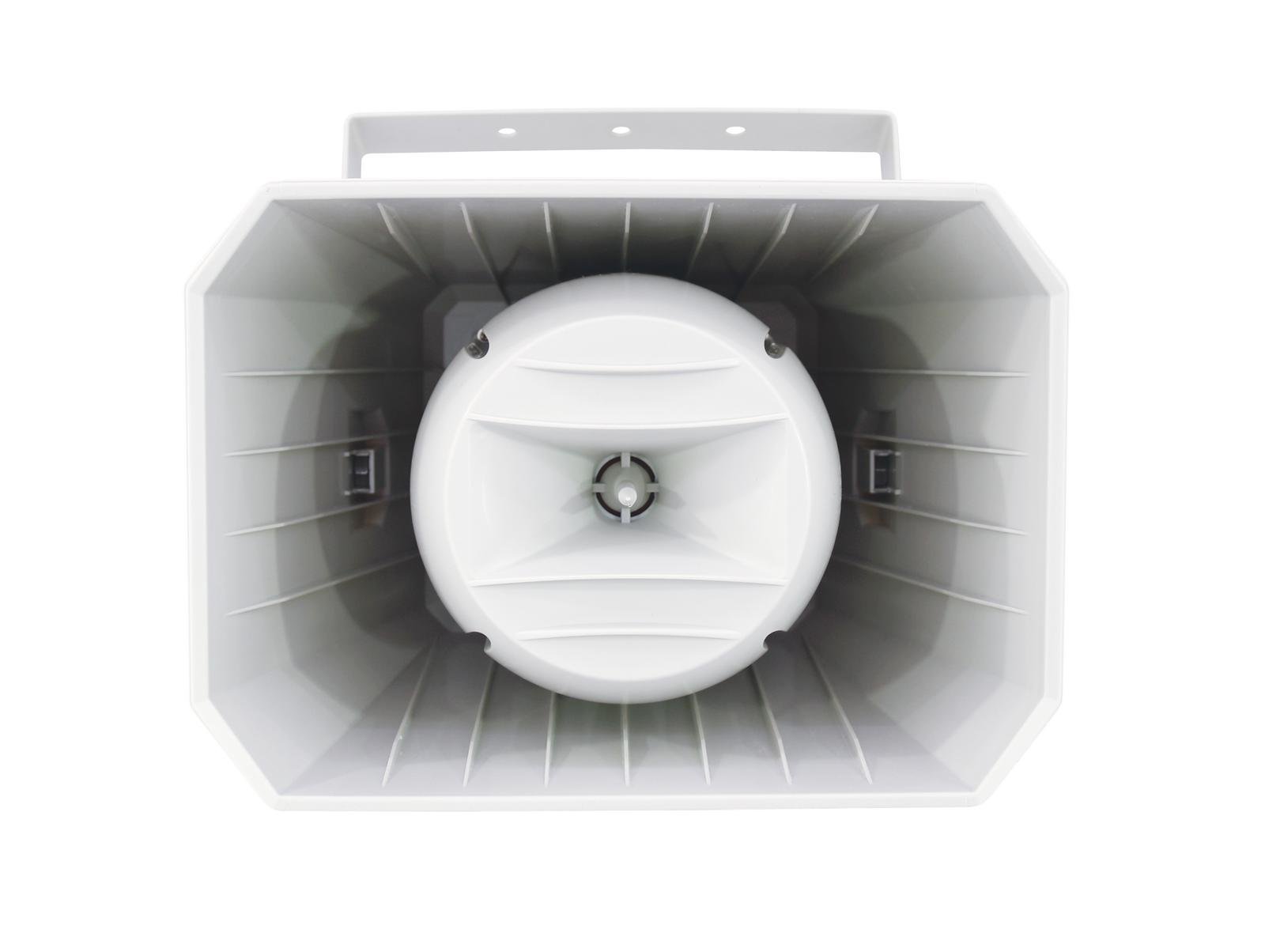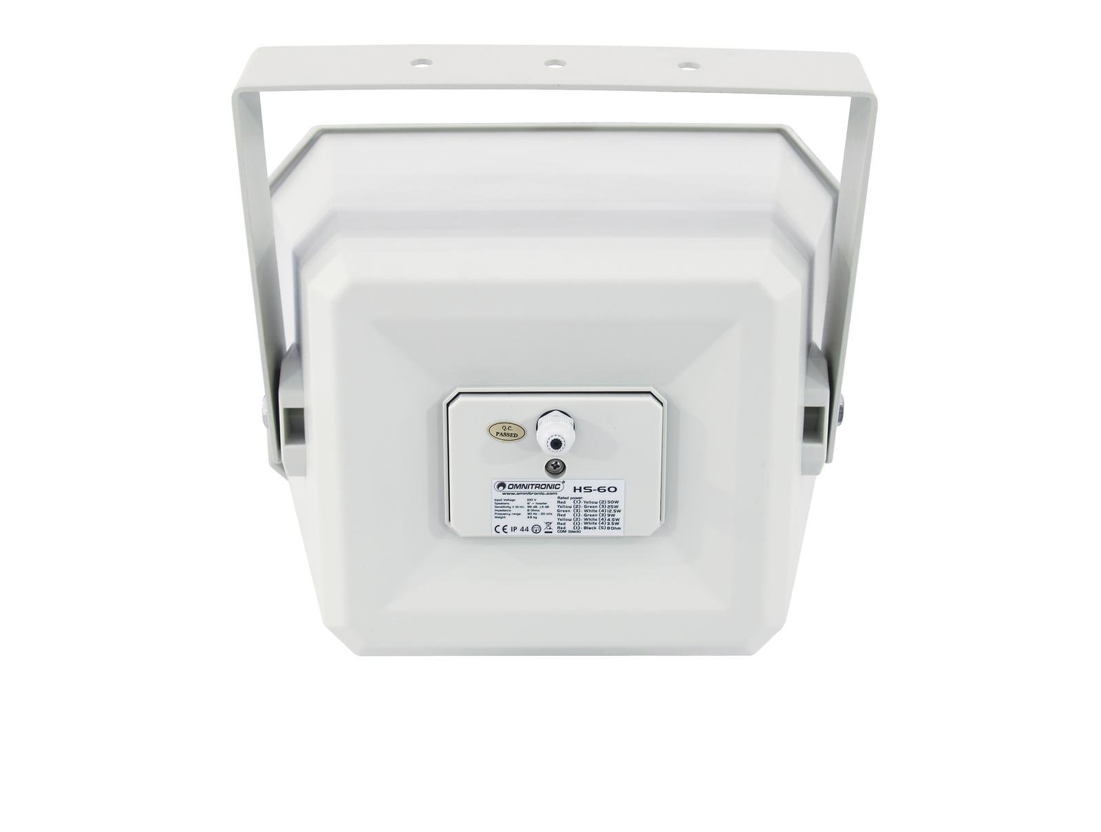 Home Horn Speaker OMNITRONIC HS-60 PA Horn Speaker OMNITRONIC HS-60 PA Horn Speaker SKU: 80710824 233,80 € Discount of %. IVA included. Buy Contact Add to wishlist Weather-proof horn speaker with tweeter, 100 V 4.5/9/12.5/25/50 W RMS2-way speaker system15 cm conical speaker (6") and tweeter for extended frequency rangeHigh sound pressure and wide frequency rangeDurable plastic cabinetFor outdoor amplifying systems in football stadiums, outdoor pools, open air eventsSuitable for outdoor use IP44For further information about this product, please refer to the Data Sheet under "Downloads"Package contents1 x device, 1 x user manualIP classification:IP44Power:Program: 100WRated: 50W RMSFrequency range:90 - 20000 HzSensitivity:99 dBMax. SPL:115 dBImpedance:Public address systems 100V; 8 ohmsPower tapping:2,6W; 4,5W; 9W; 12,5W; 25W; 50W RMS via screw terminal switchableConnections:Screw terminalSpeaker:1 x full rage loudspeaker (6") approx. 15 cmType of speaker:HornDimensions:Width: 25,3 cmDepth: 31 cmHeight: 36,3 cmWeight:4,00 kg Brand Omnitronic Tags OMNITRONICHS-60PAHornSpeakerOnitronic Share