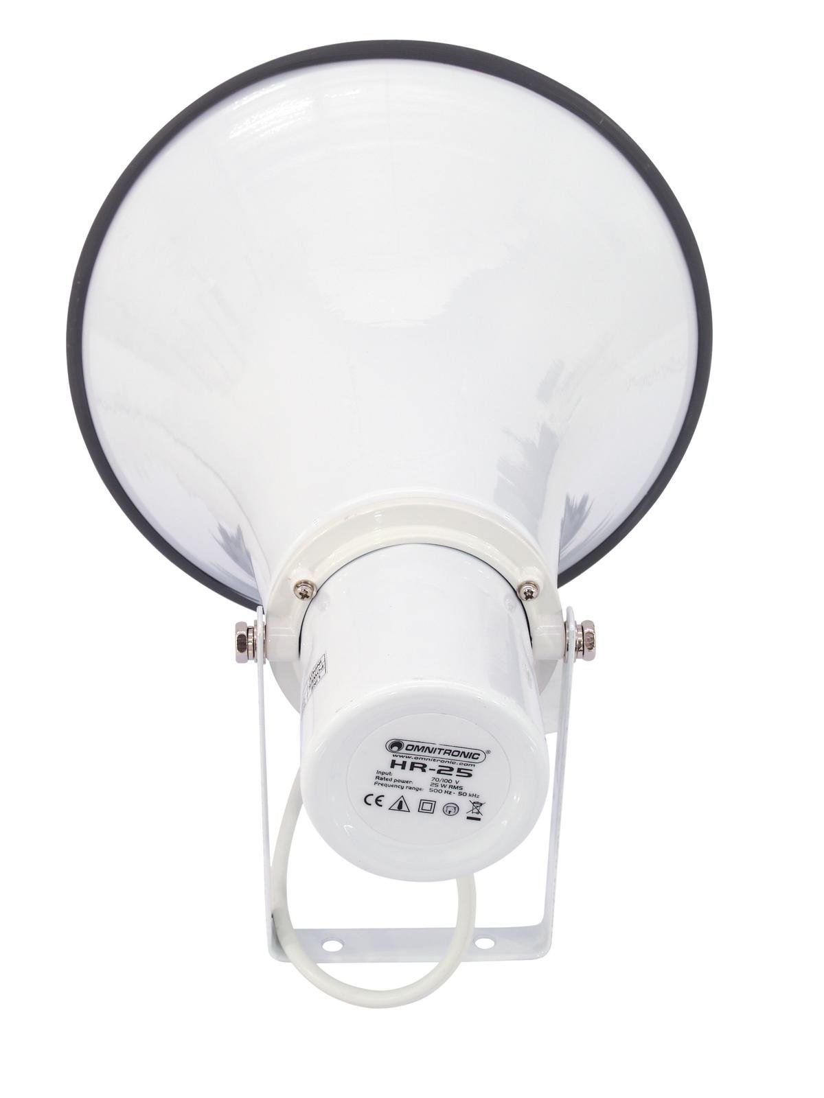 Home Horn Speaker OMNITRONIC HR-20 PA Horn Speaker OMNITRONIC HR-20 PA Horn Speaker SKU: 80710832 52,25 € Desconto de %. IVA incluído. Comprar Contactar Adicionar à wishlist Weather-proof horn speaker, Public address systems 100V 10/20 W RMSDurable aluminum versionWith Mounting bracketSuitable for outdoor use IP44IP classification:IP44Power:Program: 40WRated: 20W RMSFrequency range:400 - 5000 HzSensitivity:102 dBImpedance:Public address systems 100VAttachment system:Mounting bracketPower tapping:10W; 20W RMS via no connector/cable only switchableType of speaker:HornDimensions:Depth: 30,5 cmDiameter: Ø 20,4 cmWeight:1,63 kg Marca Omnitronic Tags OMNITRONICHR-20PAHornSpeakerOradorchifre Características Partilhar