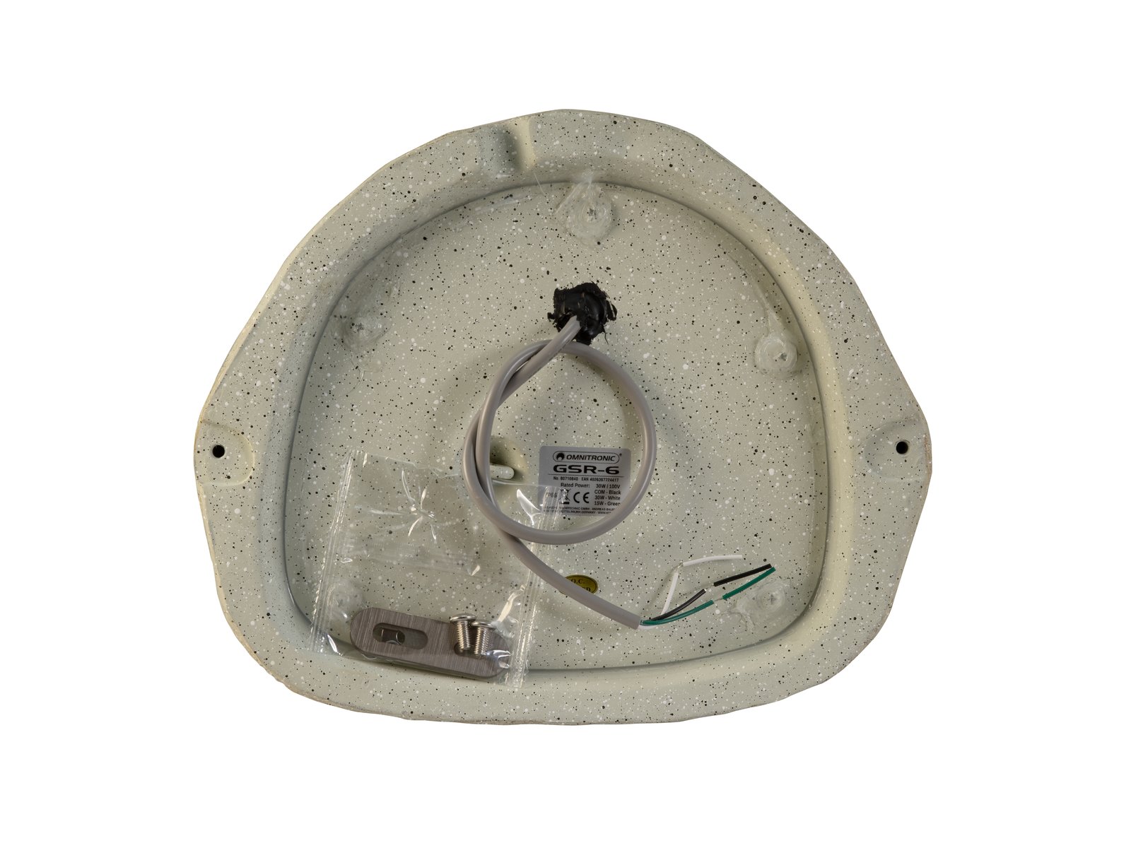 Home OUTDOOR PUBLIC ADDRESS SPEAKERS OMNITRONIC GSR-6 Garden Speaker OMNITRONIC GSR-6 Garden Speaker SKU: 80710840 132,66 € Desconto de %. IVA incluído. Comprar Contactar Adicionar à wishlist 2-way coaxial speaker, 100 V 15/30 W RMS2-way coaxial speaker with excellent sound qualityGrey aluminum grilleSuitable for outdoor use IP66Easy installationScratchproof and shockproofPackage contents1 x speaker, 1 x user manual, 1 x mounting materialIP classification:IP66Cable length:0,5 mFrequency range:100 - 20000 HzSensitivity:88 dB (1W/1m)Setup:Easy installationPower tapping:15W; 30WSpeaker:Woofer (6.5") approx. 17 cm with ferrit magnetTweeter (0.5") approx. 1.27 cmType of speaker:Coaxial speakerType of construction:Closed BoxMaterial:Fiber glassColor:Grey, scratchproof and shockproofDimensions:Length: 26 cmWidth: 32 cmHeight: 25,5 cmWeight:4,60 kg Marca Omnitronic Tags OMNITRONICGSR-6GardenSpeakerPalestrante Características Partilhar