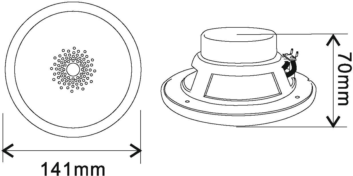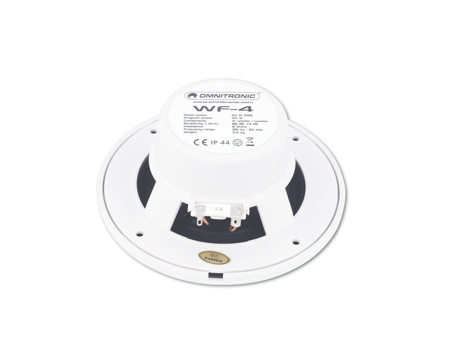 Home INDOOR PUBLIC ADDRESS SPEAKERS OMNITRONIC WF-4 Flush-Mount Speaker OMNITRONIC WF-4 Flush-Mount Speaker SKU: 80710863 51,36 € Desconto de %. IVA incluído. Comprar Contactar Adicionar à wishlist Weather-proof 2-way speaker, LF: 4" HF: 1", 20 W RMS / 8 ohms Ø 141 mm2-way system with 10 cm woofer (4") and 2.5 cm tweeter (1")8-ohm speaker systemDurable plastic cabinetSuitable for outdoor use IP44Package contents1 x speaker, 1 x user manualIP classification:IP44Power:Program: 30WRated: 20W RMSFrequency range:155 - 20000 HzSensitivity:88 dBImpedance:8 ohmsConnections:Solder tailSpeaker:1 x woofer (4") approx. 10 cmCompression tweeter highs (1") approx. 2.5 cmType of speaker:Flush-mount speaker; Coaxial speakerMounting dimensions:Ø 12 cmMounting depth:53 mmDimensions:Width: 14,1 cmDepth: 7 cmHeight: 14,1 cmWeight:510 g Marca Omnitronic Tags OMNITRONICWF-4Flush-MountSpeaker Partilhar
