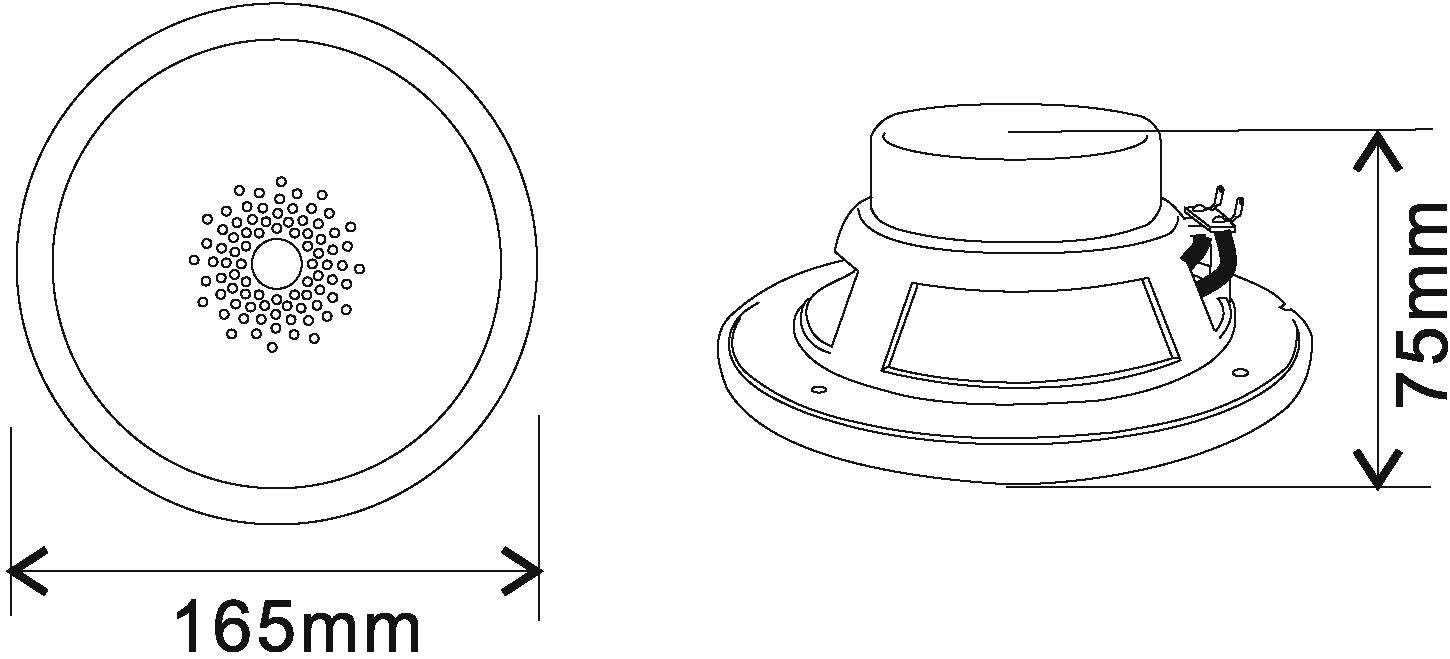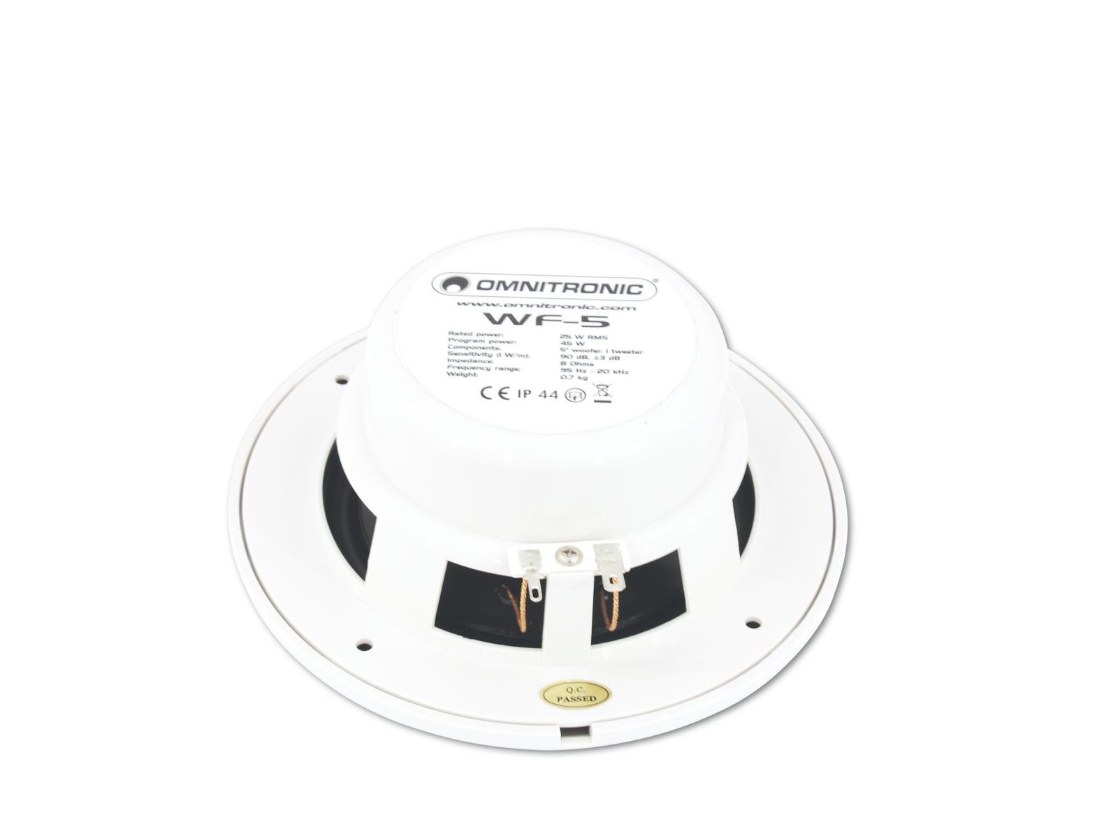 Home INDOOR PUBLIC ADDRESS SPEAKERS OMNITRONIC WF-5 Flush-Mount Speaker OMNITRONIC WF-5 Flush-Mount Speaker SKU: 80710864 61,81 € Desconto de %. IVA incluído. Comprar Contactar Adicionar à wishlist Weather-proof 2-way speaker, LF: 5" HF: 1", 25 W RMS / 8 ohms Ø 164 mm2-way system with 13 cm woofer (5") and 2.5 cm tweeter (1")8-ohm speaker systemDurable plastic cabinetSuitable for outdoor use IP44Package contents1 x speaker, 1 x user manualIP classification:IP44Power:Program: 45WRated: 25W RMSFrequency range:95 - 20000 HzSensitivity:90 dBImpedance:8 ohmsConnections:Solder tailSpeaker:1 x woofer (5") approx. 13 cmConematerial: PP polypropyleneCompression tweeter highs (1") approx. 2.5 cmType of speaker:Flush-mount speaker; Coaxial speakerMounting dimensions:Ø 14,5 cmMounting depth:60 mmDimensions:Width: 16,5 cmDepth: 7,5 cmHeight: 16,5 cmWeight:650 g Marca Omnitronic Tags OMNITRONICWF-5Flush-MountSpeaker Características Partilhar