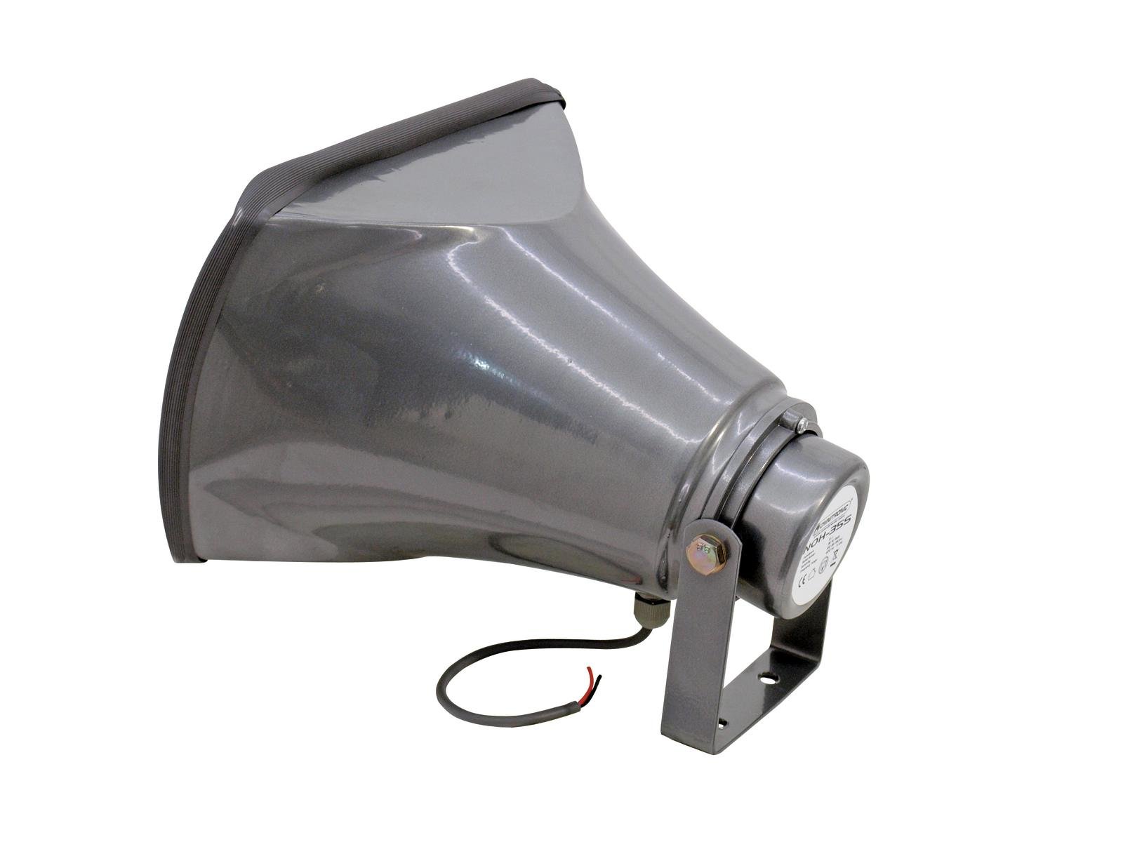 Home Horn Speaker OMNITRONIC NOH-35S PA Horn Speaker OMNITRONIC NOH-35S PA Horn Speaker SKU: 80710955 46,94 € Discount of %. IVA included. Buy Contact Add to wishlist Horn speaker, 35 W RMS, 8 ohms8-ohm speaker systemDurable aluminum versionWith Mounting bracketSuitable for outdoor use IP44Package contents1 x device, 1 x user manualIP classification:IP44Power connection:Fixed Supply cord with open wiresCable length:Approx. 0,4 mPower:Rated: 35W RMSFrequency range:400 - 5000 HzSensitivity:102 dB (1W/1m)Max. SPL:117 dBImpedance:8 ohmsAttachment system:Mounting bracketMaterial:AluminumColor:GreyTemperature range:--20° C - +50° CDimensions:Width: 24,5 cmDepth: 26 cmHeight: 17 cmWeight:1,20 kgMounting bracketMaterial:Steel, painted Brand Omnitronic Tags OMNITRONICNOH-35SPAHornSpeaker Share