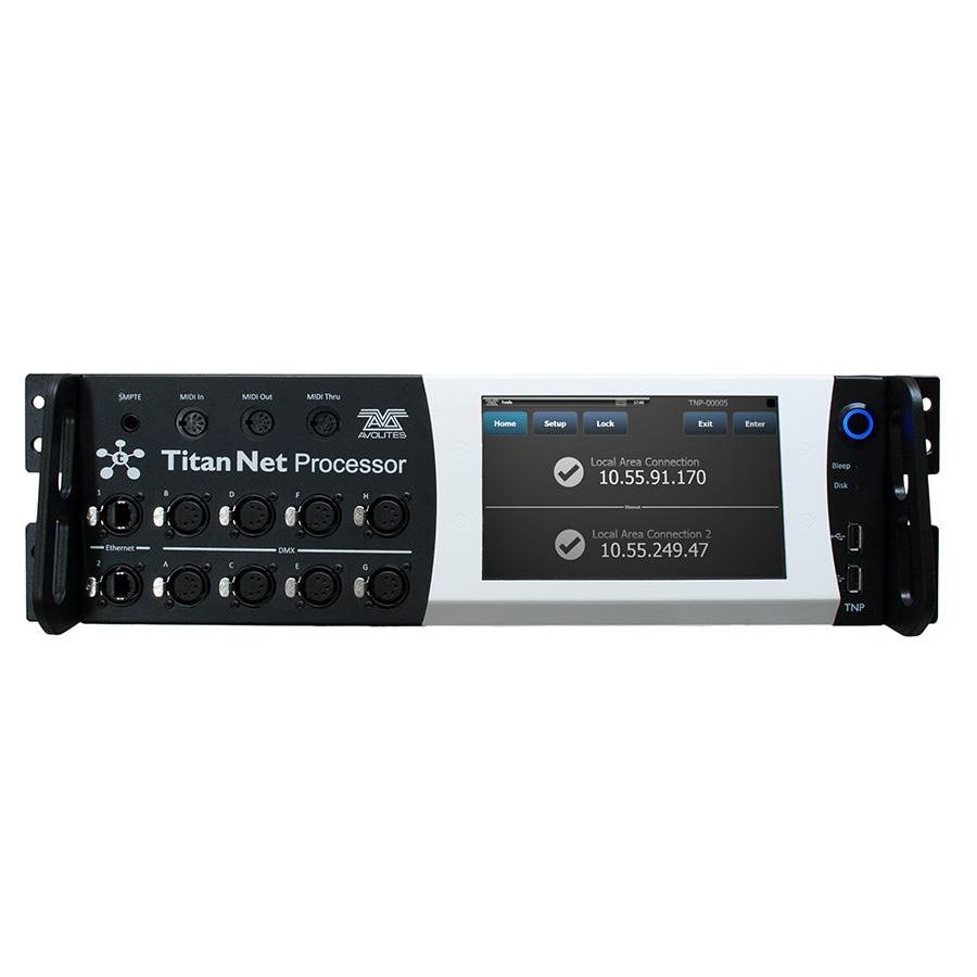The Avolites Titan Network Processor (TNP) enables any Titan console to be expanded to a total of 64 Universes. Each Titan Network Processor processes up to 16 universes of which 8 are provided as DMX512 on the unit and all 16 universes are available via Art-net over the dual Ethernet port.