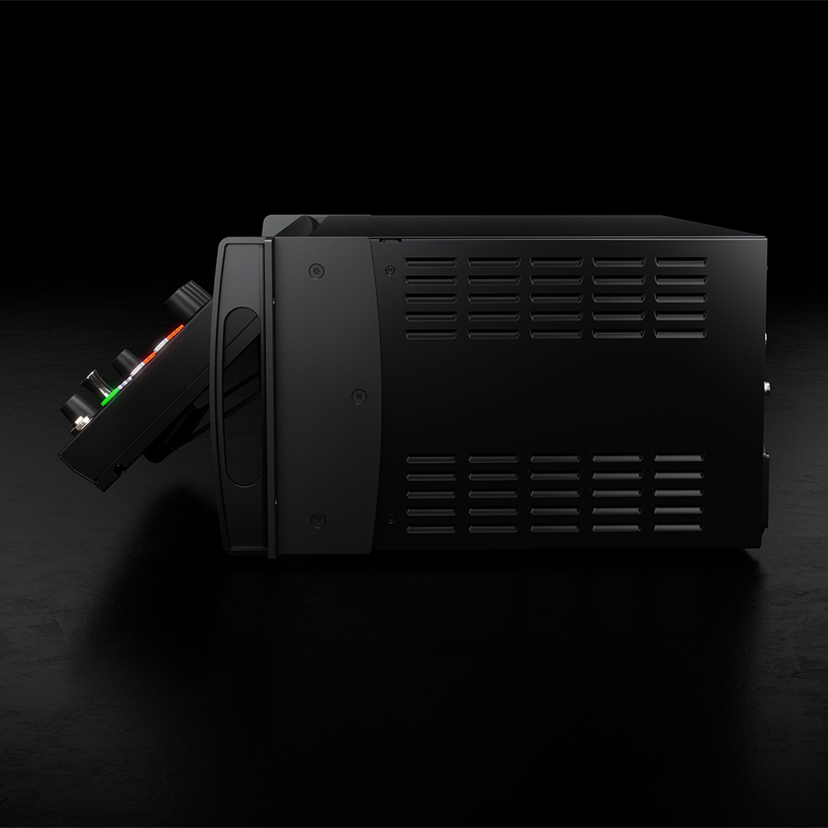 - Continuously adjustable front panel for comfortable mixing experience when mounted in a rack