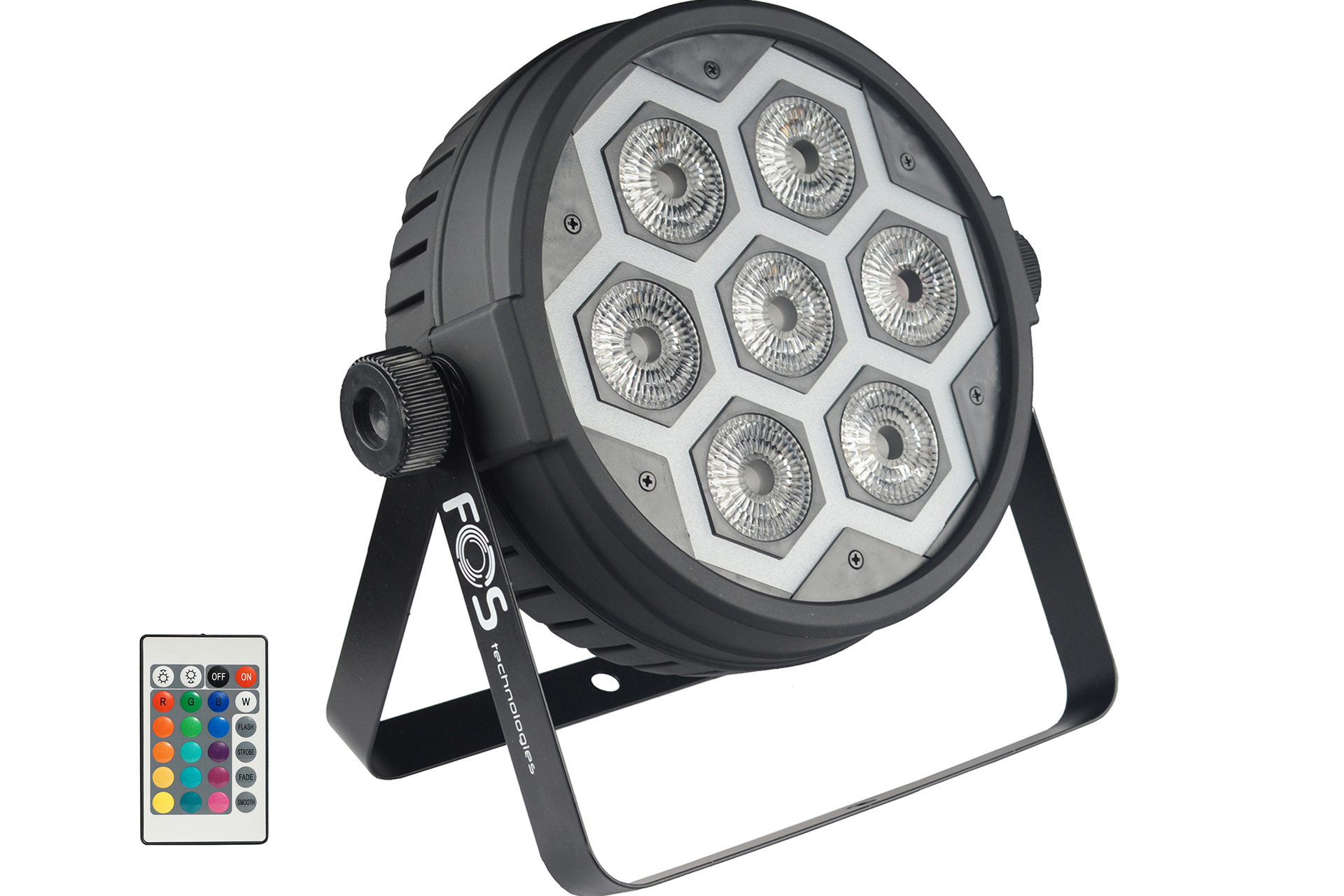 Latest technology Led Par with NEON effect, 7x12 watt 4in1 RGBW leds 60 x 0.2watt RGB leds for the neon pixel effect, 26 degrees beam angle, IR remote ,CTB and CTO linear colour temperature, Bult in prorgams, powercon in/out, 2.2kg