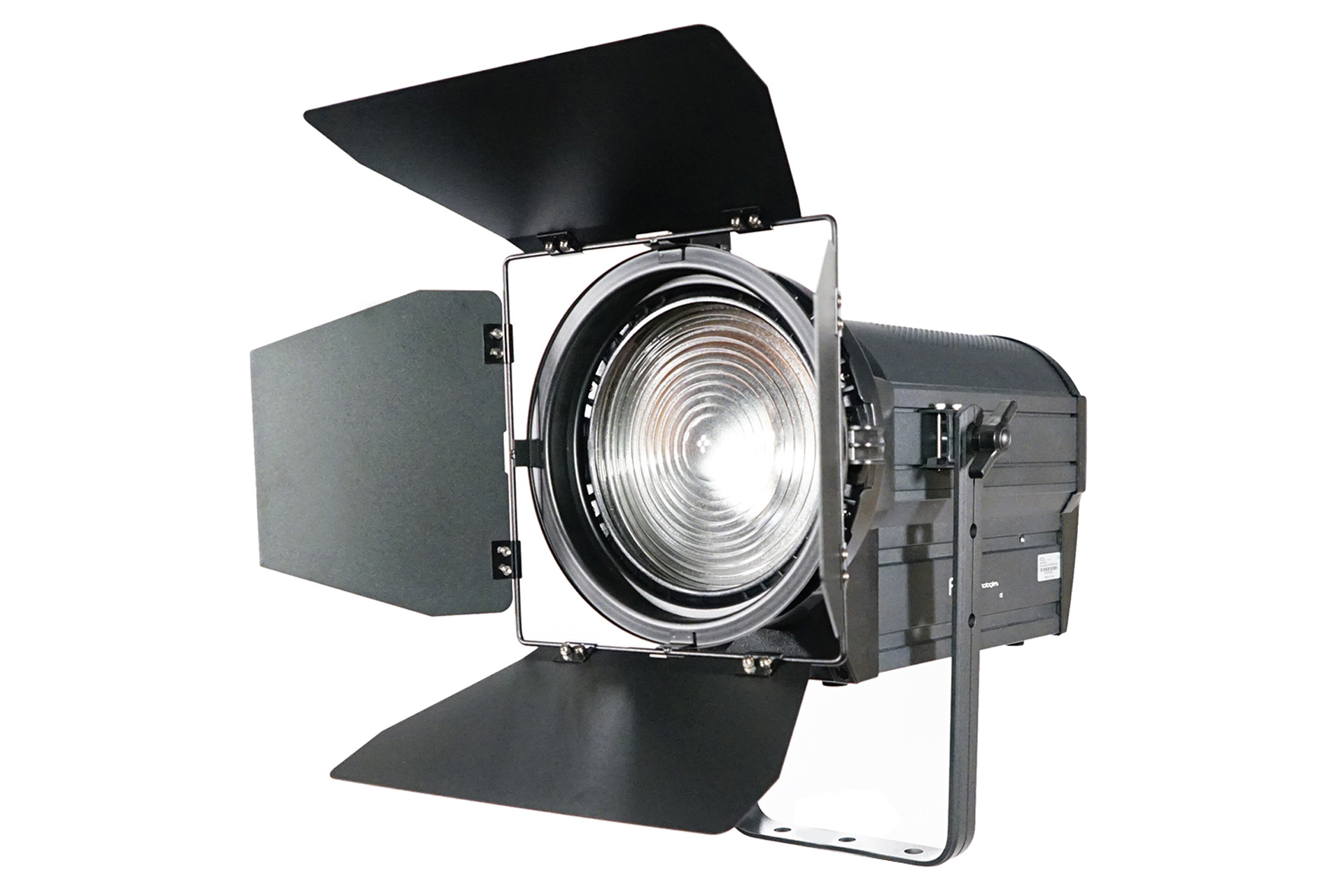Studio Fresnel, 100 watt Warm White 3200K Cob Led, high CRI (Ra?92) and high brightness LED, Beam angle: 15-60degrees, manual focus adjustable, DMX channel: 1CH, Low Noise Operation,5 kg.