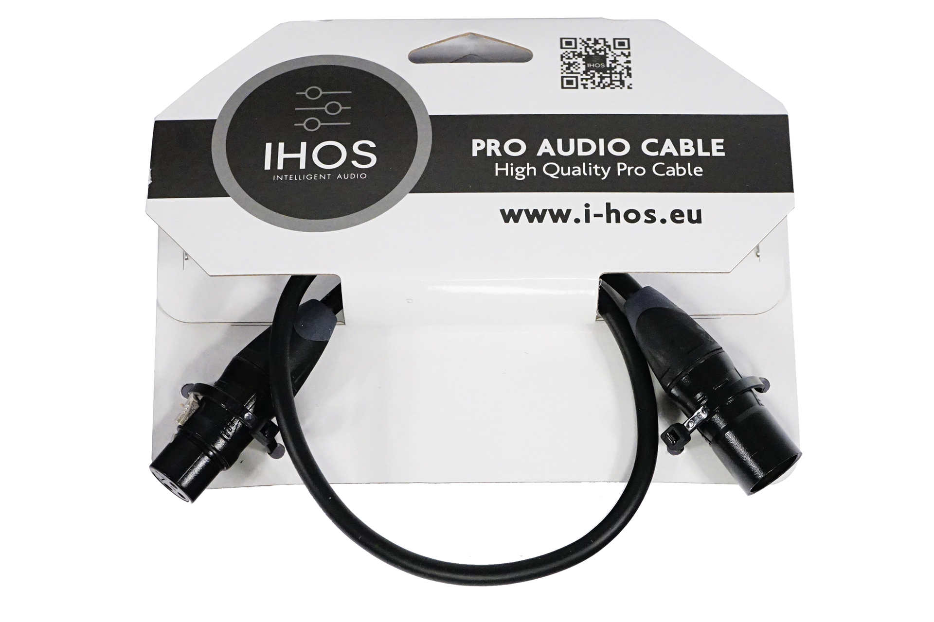 Professional XLR male to XLR female cable, nickel plated, high-quality signal transmission, soft PVC jacket, 60mm cable, flexible, black connectors, 0.5 meter,