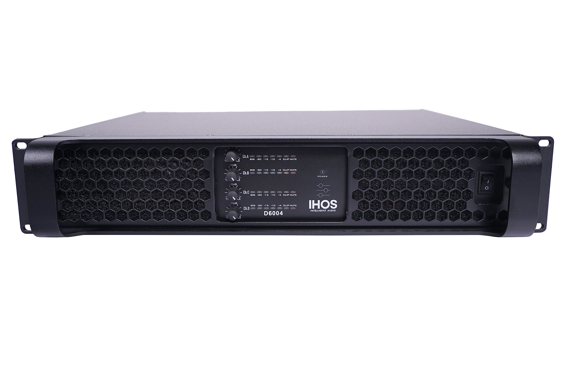 D class high performance 4 channels amplifier, 4 x900 w/8ohms , 4 x1800w/4 ohms, XLR input, speakon output, led VU meter, temperature control fans, frequency responce 20Hz - 34Kz,adjustable VPL, 10kg.