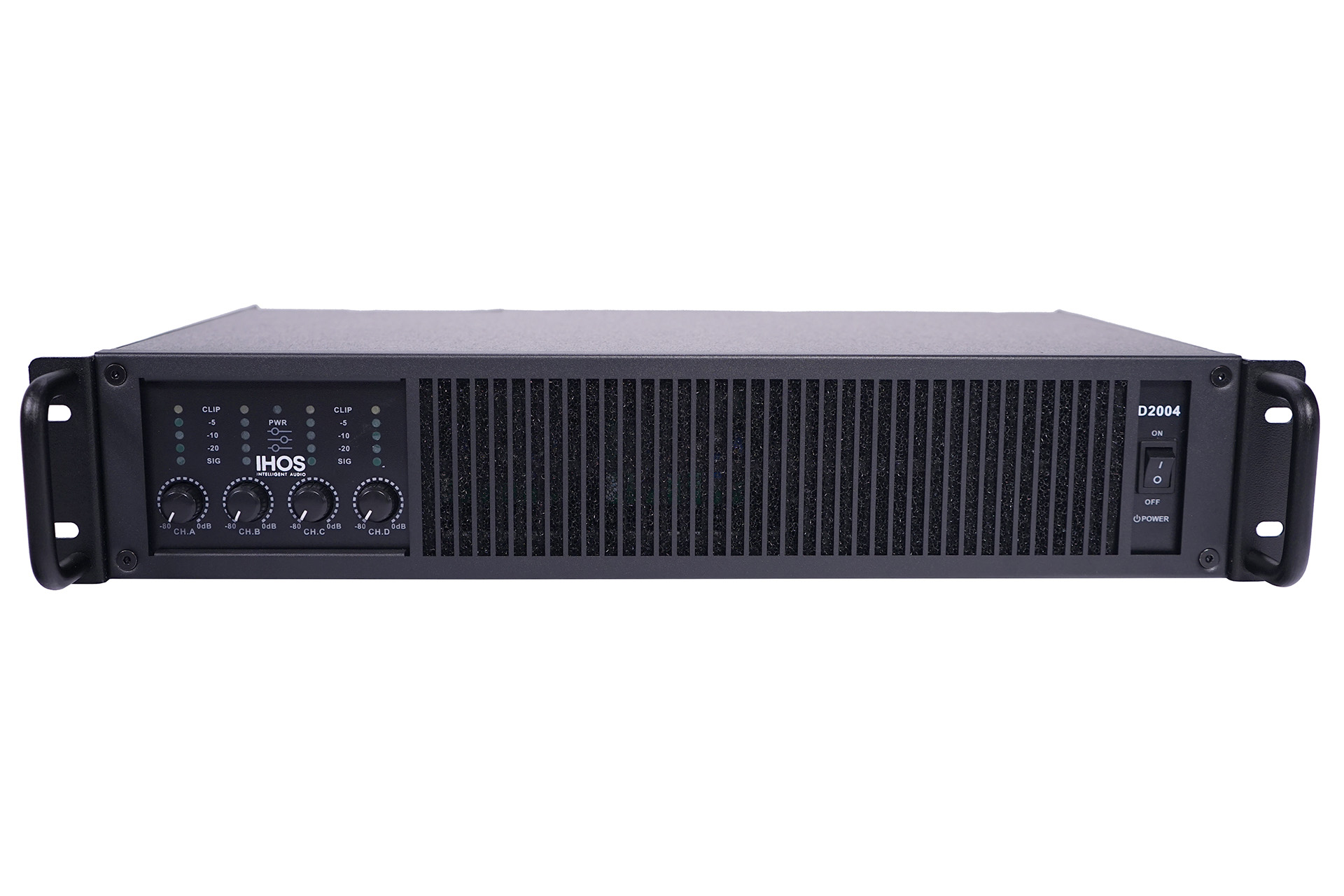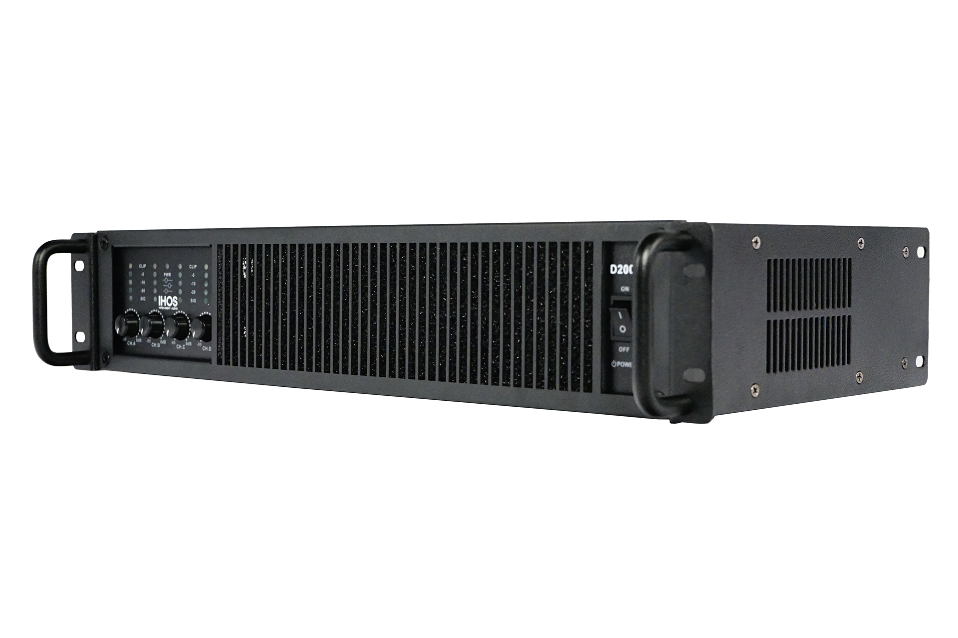 D class high performance 4 channels amplifier, 4 x400 w/8ohms , 4 x 640w/4 ohms, XLR input, speakon output, led VU meter, temperature control fans, frequency responce 20Hz - 34Kz,6kg.