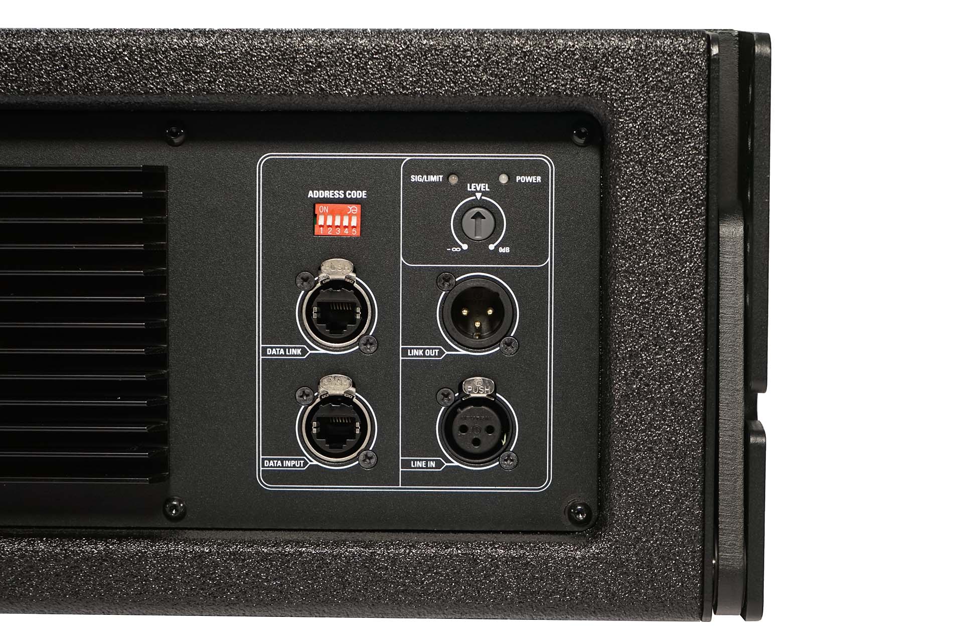 Dilos Line array floor stackable configuration that includes 4 pcs 3 way active with DSP Dilos Plywood satelite and 2 pcs Dilos active plywood bandpass subwoofer with DSP.