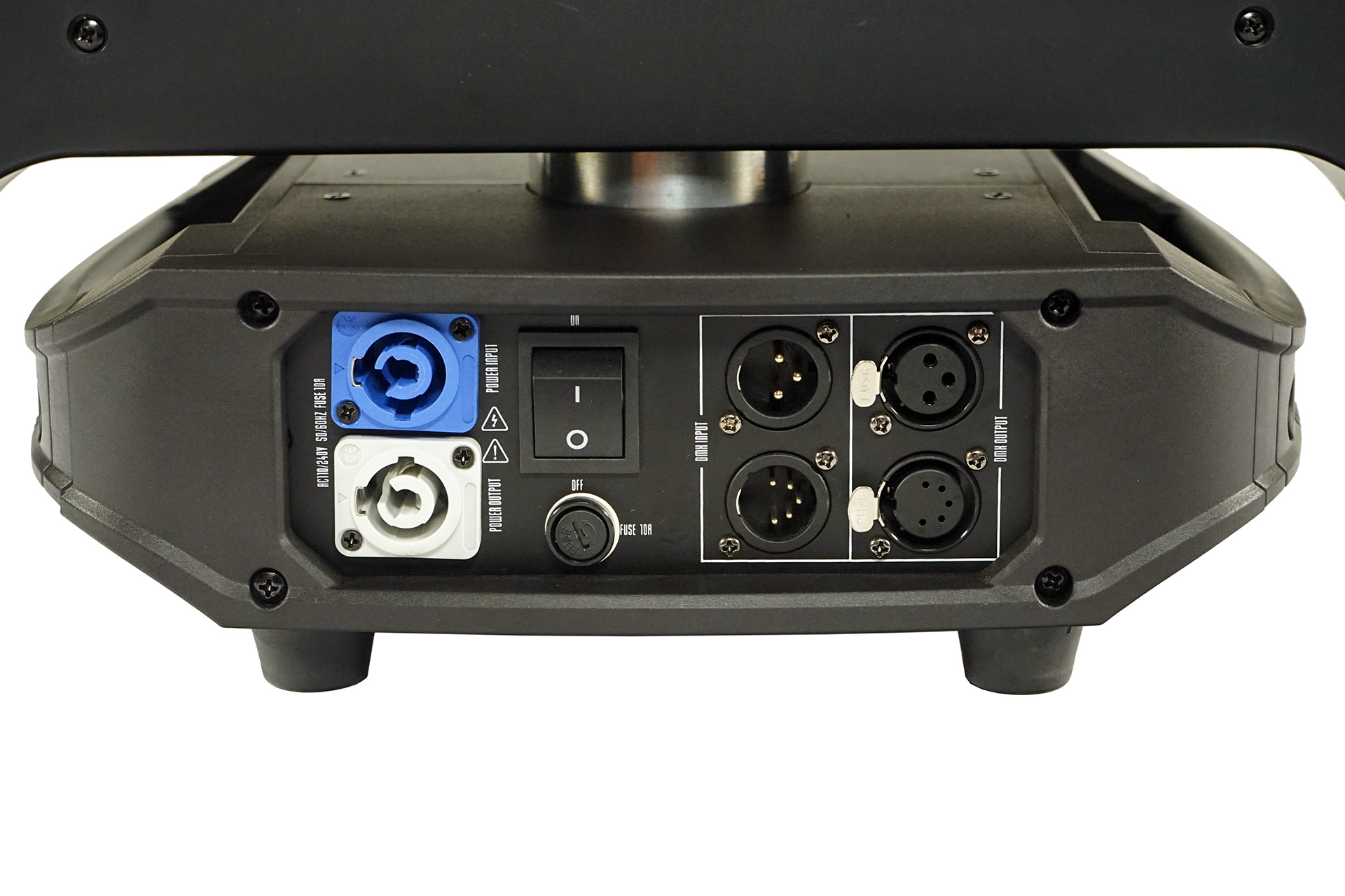 Powerful RGBW color mixing, and zooming ability from tight to wide beam angles in the front section.