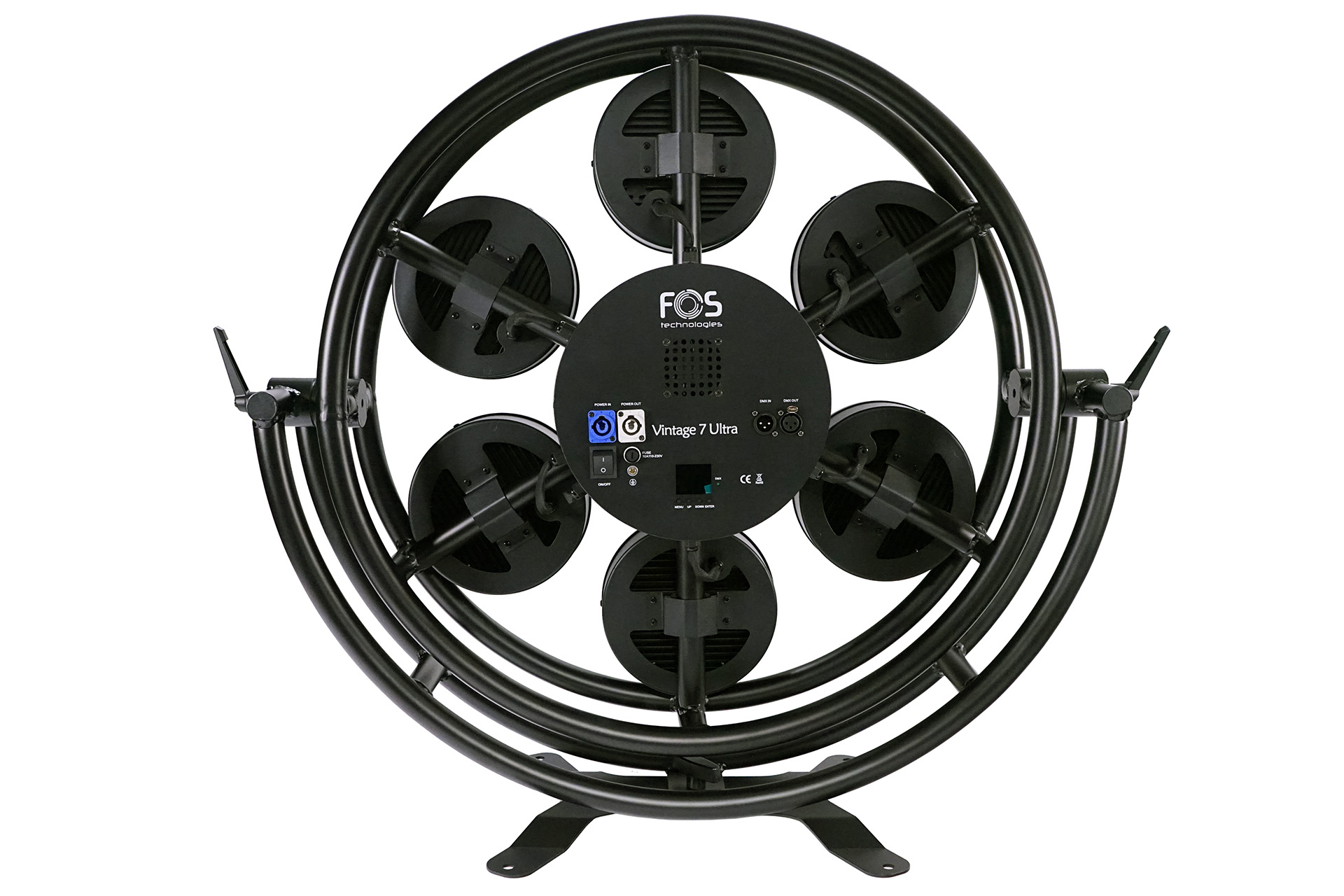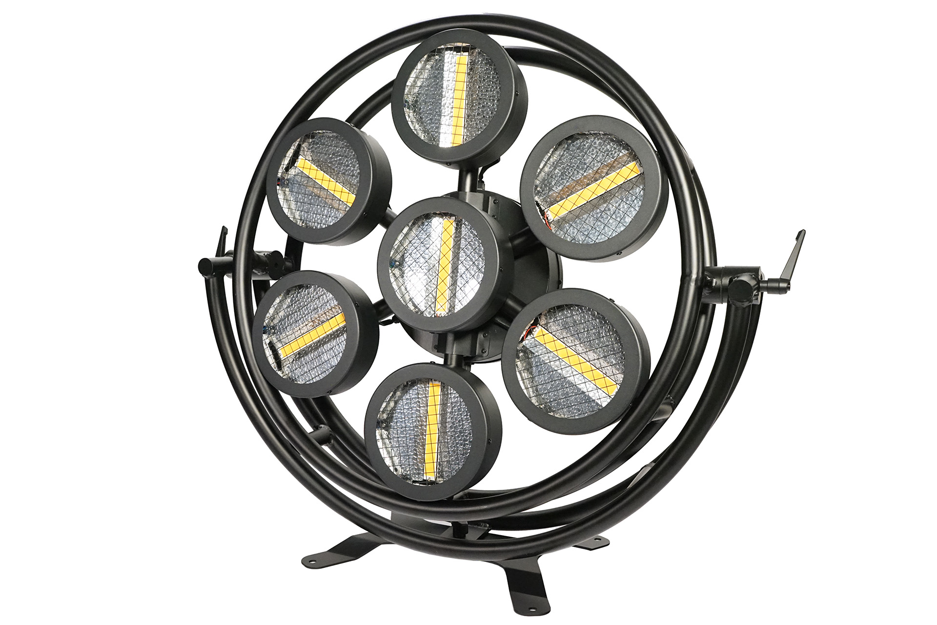 Retro backround fixture, 7 x 60watt romantic warm white 2200k led, 168?0.5W RGB 5050 smd backround led, dimeter 86cm, pixel control, , 9CH/10CH /28CH/38CH DMX channels, Aluminum alloy housing, Lcd menu display, 3pin XLR, powercon in/out, floor sta
