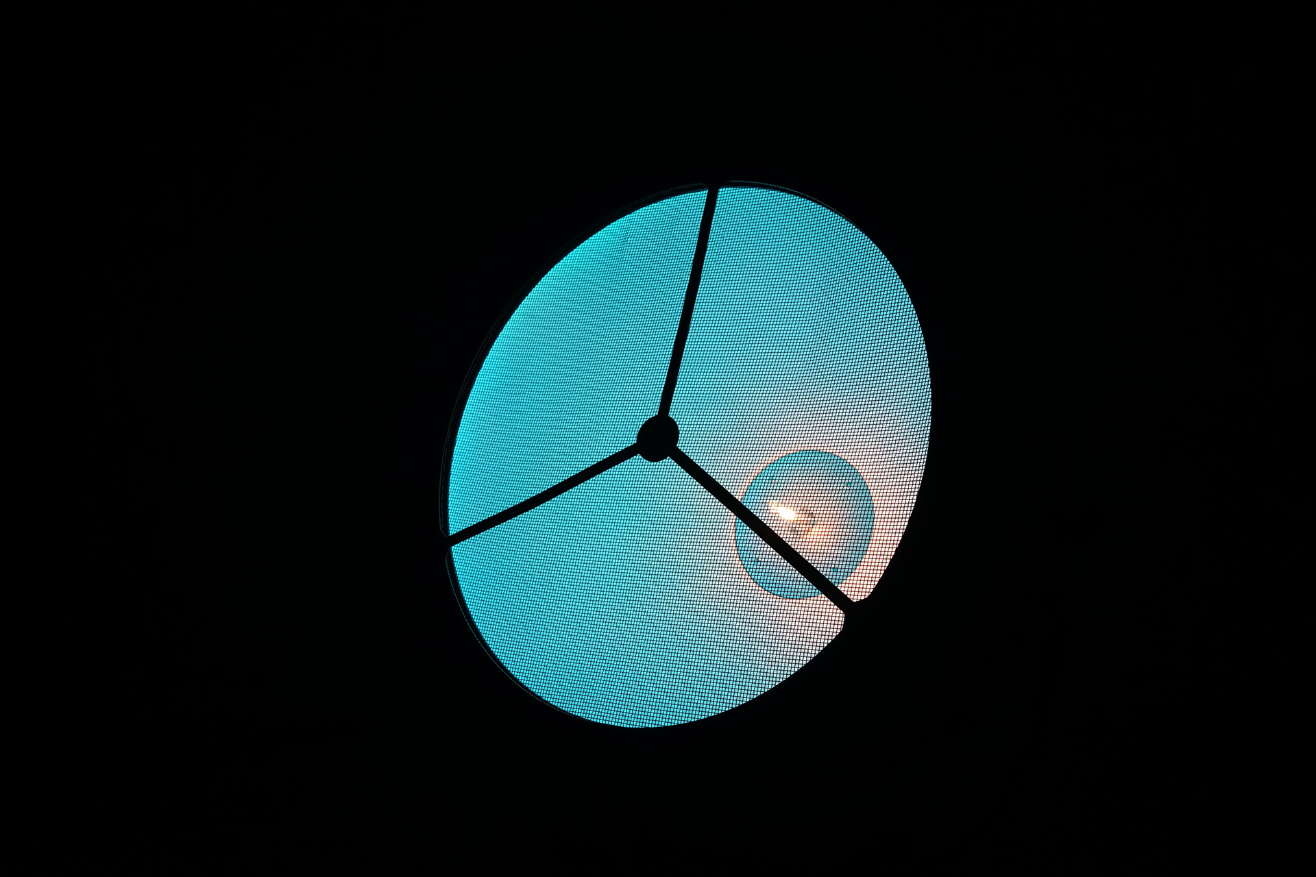 Stage fixture with Vintage / Retro appearance, ideal for background on the stage, based on a classic 750Watt halogen lamp, and 96x RGB LEDs for lighting up the reflector of the fixture.
