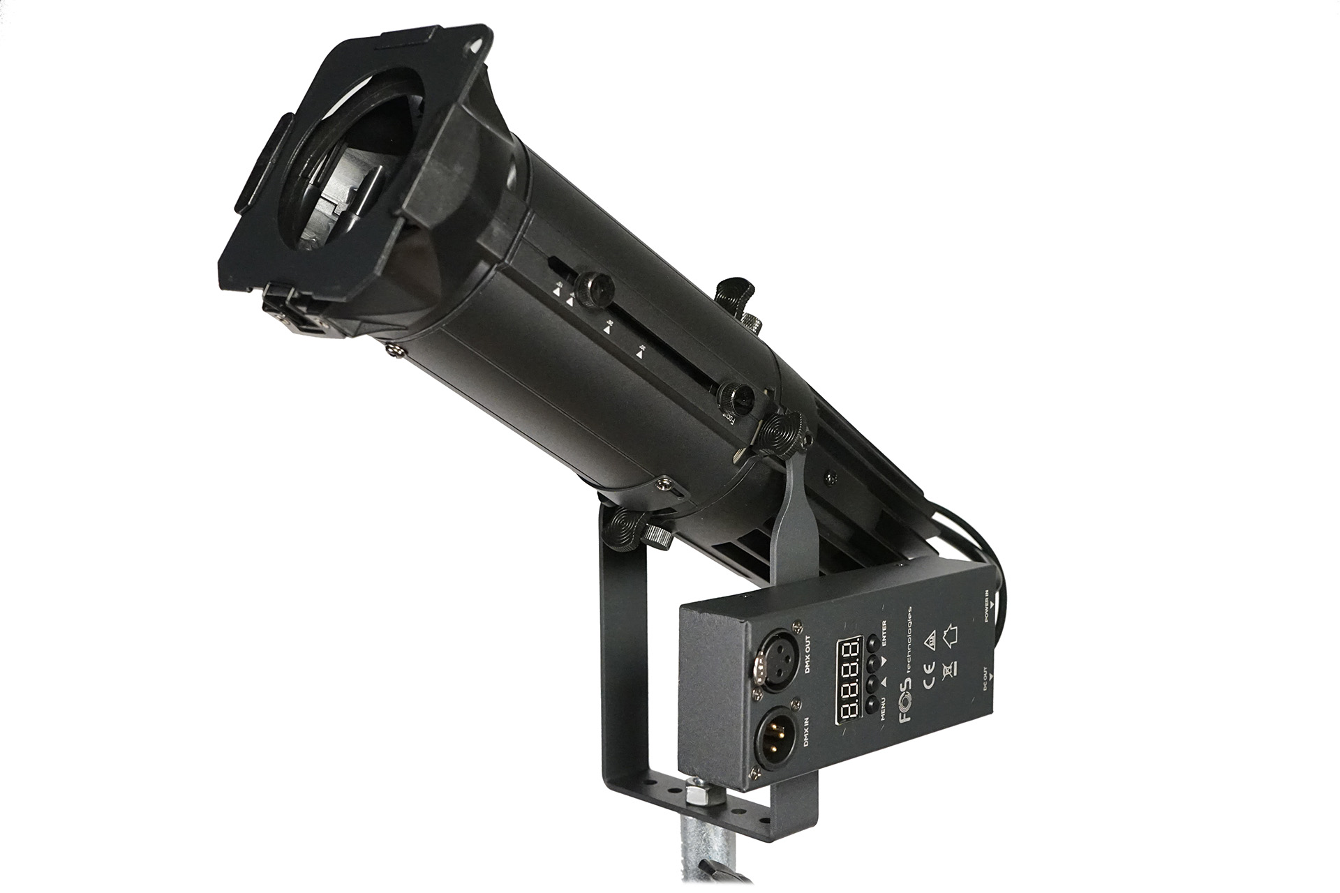 Mini Profile, 40W COB LED Warm White, 15? - 30? zoom lens, Die-casting black housing, fan-free design, High CRI of 92, Smooth dimming, flicker free,Rotary, DMX control 1/2/3/4 channels, 408 x 162 x 124mm, 2.3 kg.