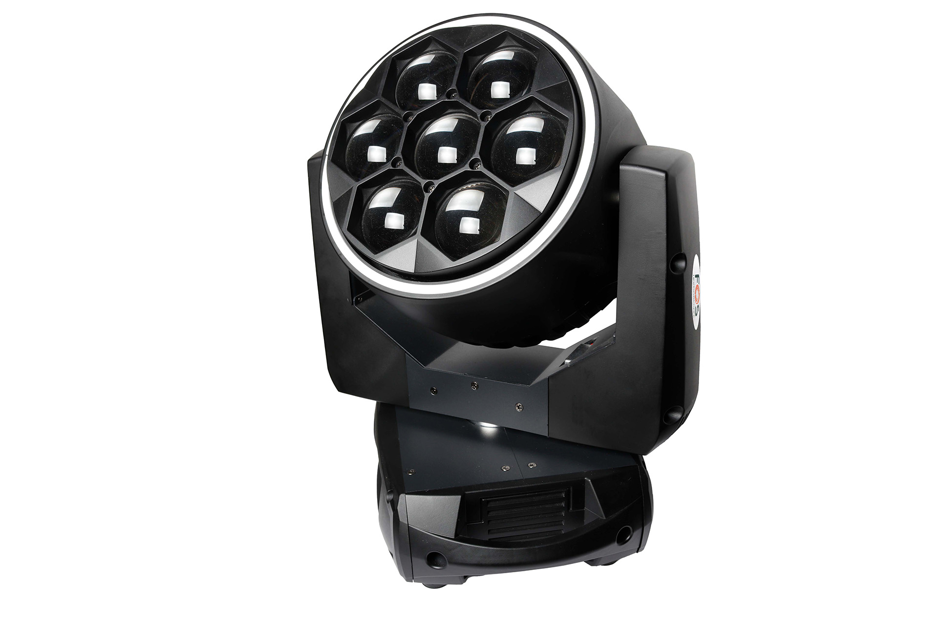 Revolutionary led wash/beam moving head, 7 leds 60 watt RGBW + 39 ring pixel leds RGB 0.2watt, linear zoom 6-60 degrees, vortex effect, full pixel control, dynamic macros, adjustable color temperature 3200K to 8000K, 26/38/66 DMX control channels, 0-100% linear dimmer, 16 bit Pan./tilt, powercon in/out, 10kg.