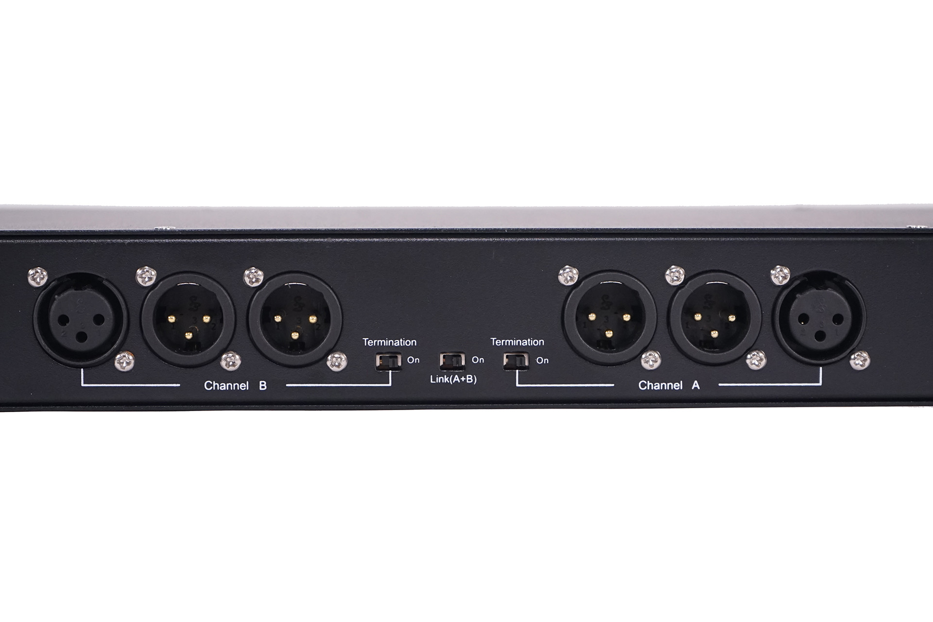 Professional Two Channels intercom master station, A+B channel link operation, A+B channels activation switch. double xlr output for each channel, 1u rack diecast housing.