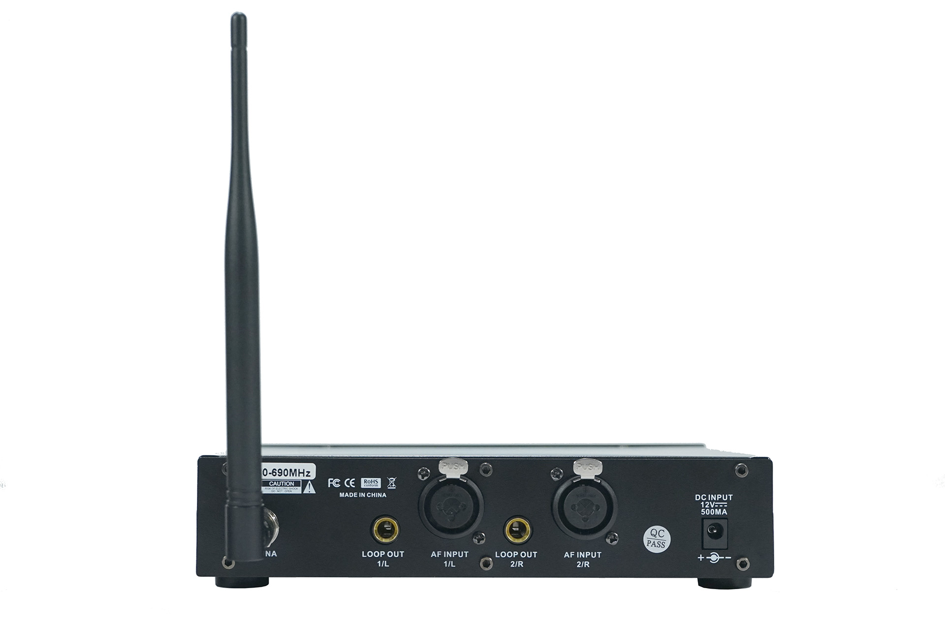 Professional stereo wireless monitoring system with built-in DSP, latest UHF transmission technology to ensure high fidelity clear sound, UHF 660-690 MHz, True diversity system to avoid drop-out in long-distance transmission, range up to 100m, adjust left/right balanced level on the bodypack receiver, Aluminum alloy bodypack has a 1000mAh built-in lithium battery, battery life is 6 hours.