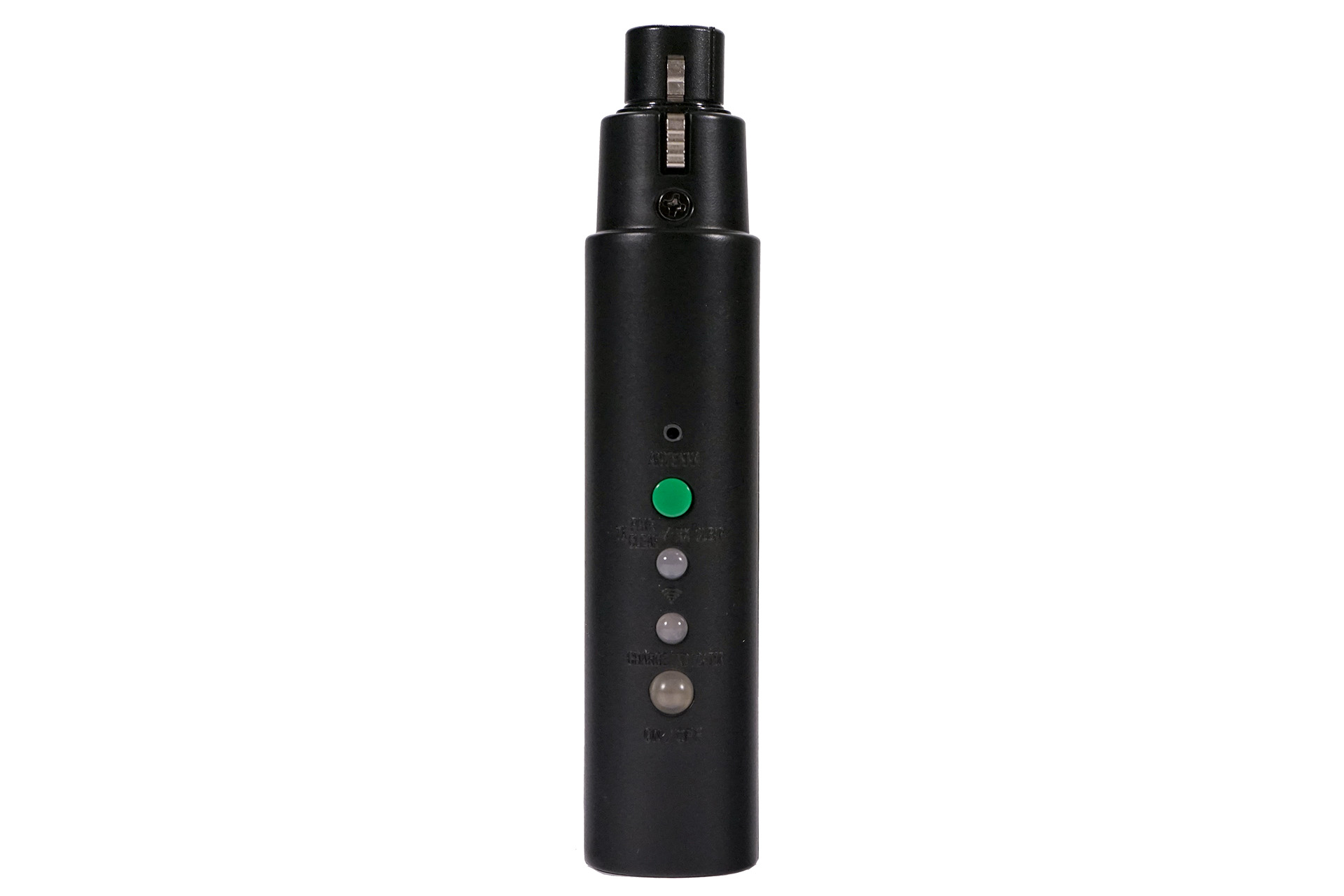 Wireless DMX receiver XLR with 2dBi antenna and working coverage 200 meters (open space), up to 50 hours battery operation time, compatible with all the FOS Airlink, battery charge time 3 hours, XLR connector for DMX and USB C and fast charging ports.
