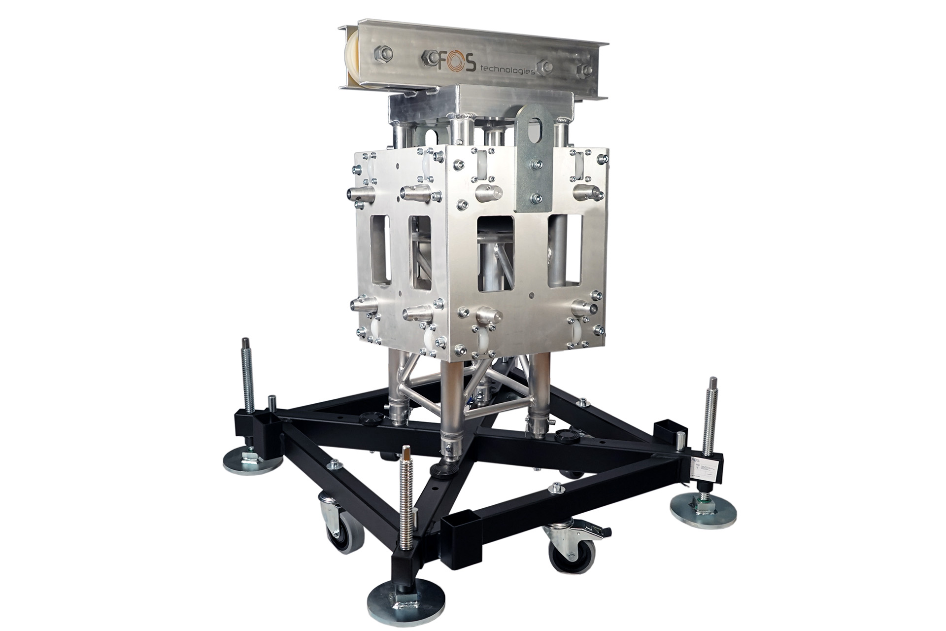 Heavy duty truss tower, maximum total height 8.5 meters, loading capacity 1000kg, 50x3mm truss, steel base black coated, steel sleeve block with Teflon rollers, 4 pcs aluminum hinge, 4 pcs steel black powder coated short outrigger, tower top for chain hoist.
